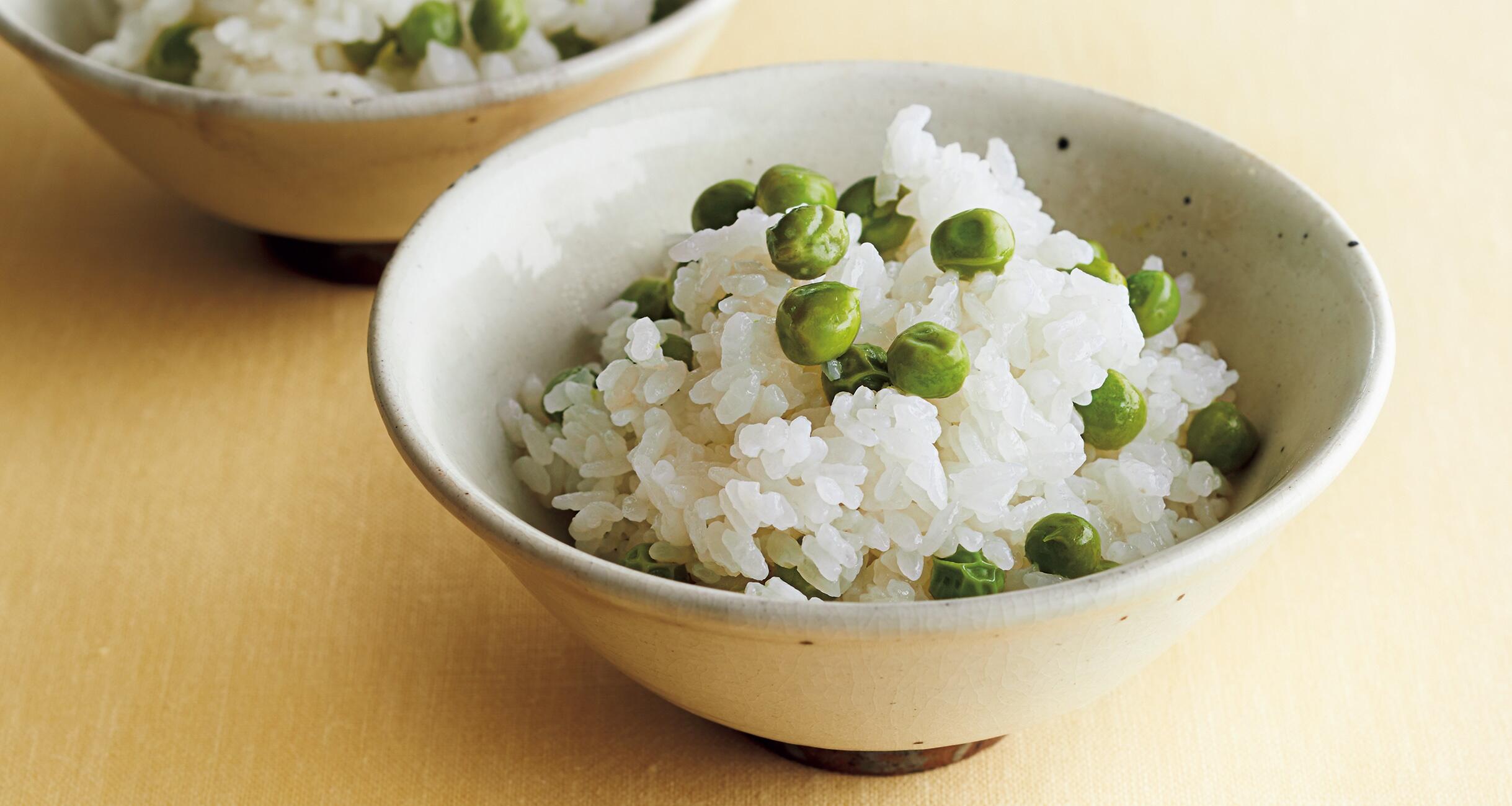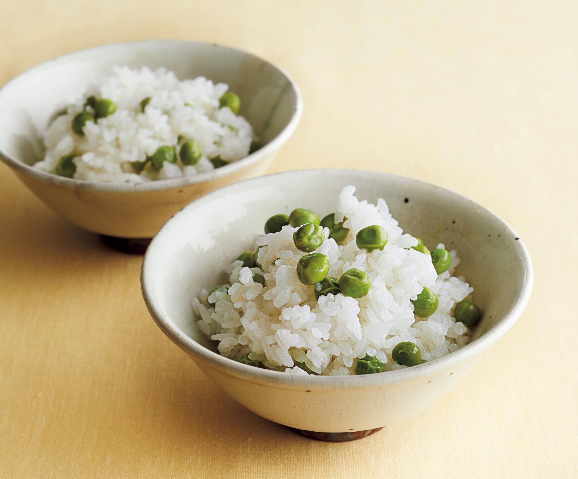 グリーンピースを使った混ぜご飯。豆の甘味と香りを生かしたやさしい味わいです。食材と塩を使いこなす基本レシピを、料理研究家の大庭英子さんに教えてもらいました。