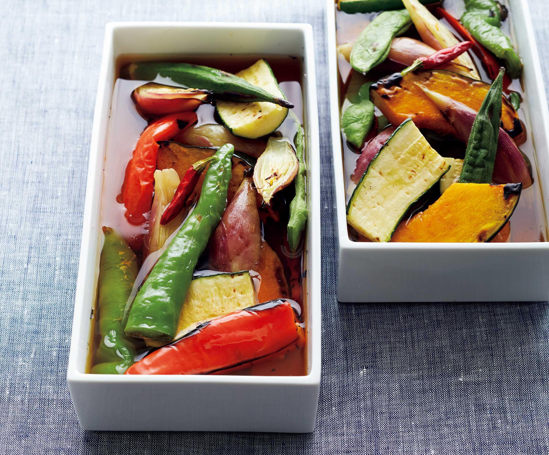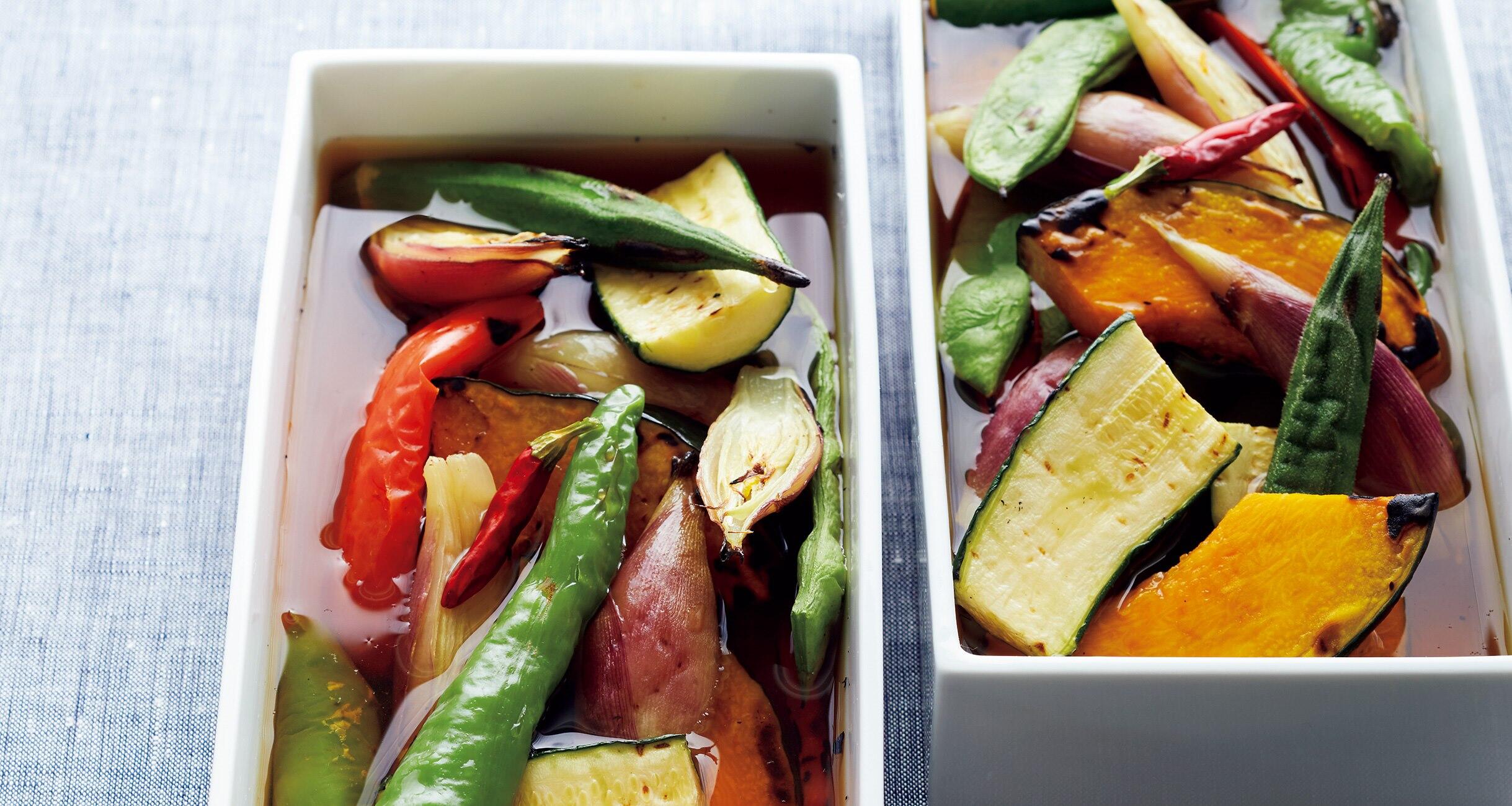 好みの野菜を香ばしく焼いて、ほんのり酢をきかせただし醤油に漬け込みます。料理の味を深める酢を使いこなす基本レシピを、料理研究家の大庭英子さんに教えてもらいました。