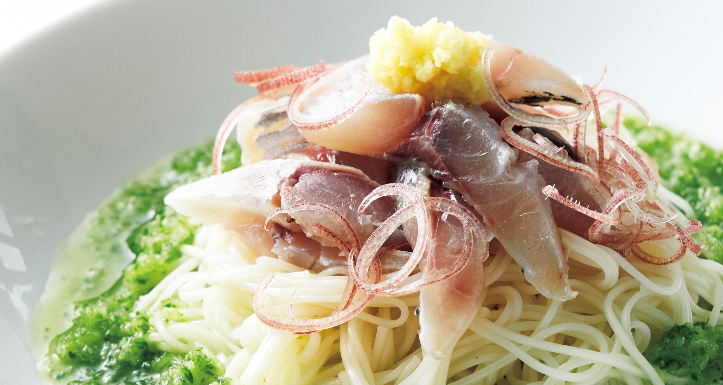 アジにみょうが。夏においしい素材で冷たいそうめん、最高です。