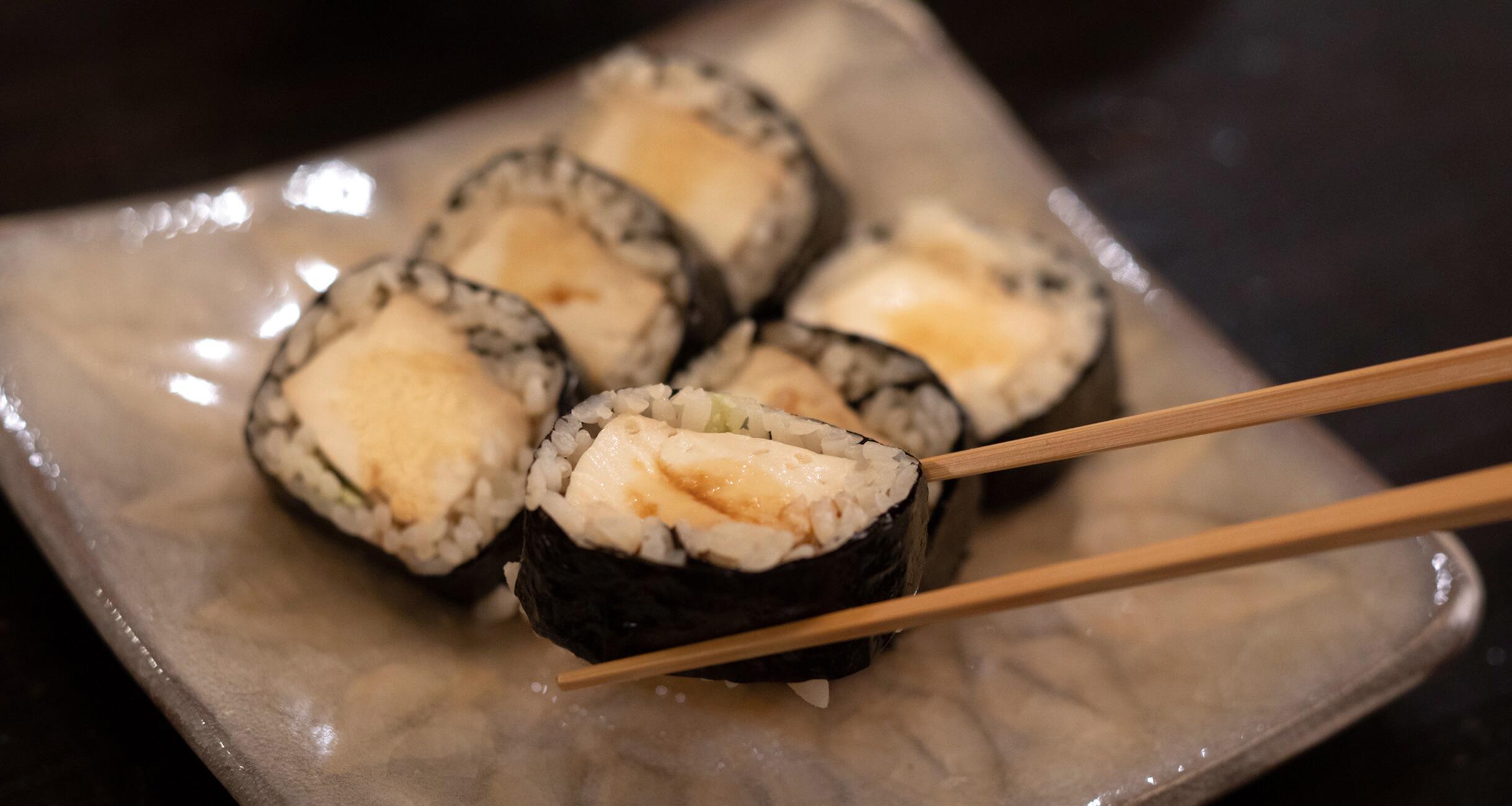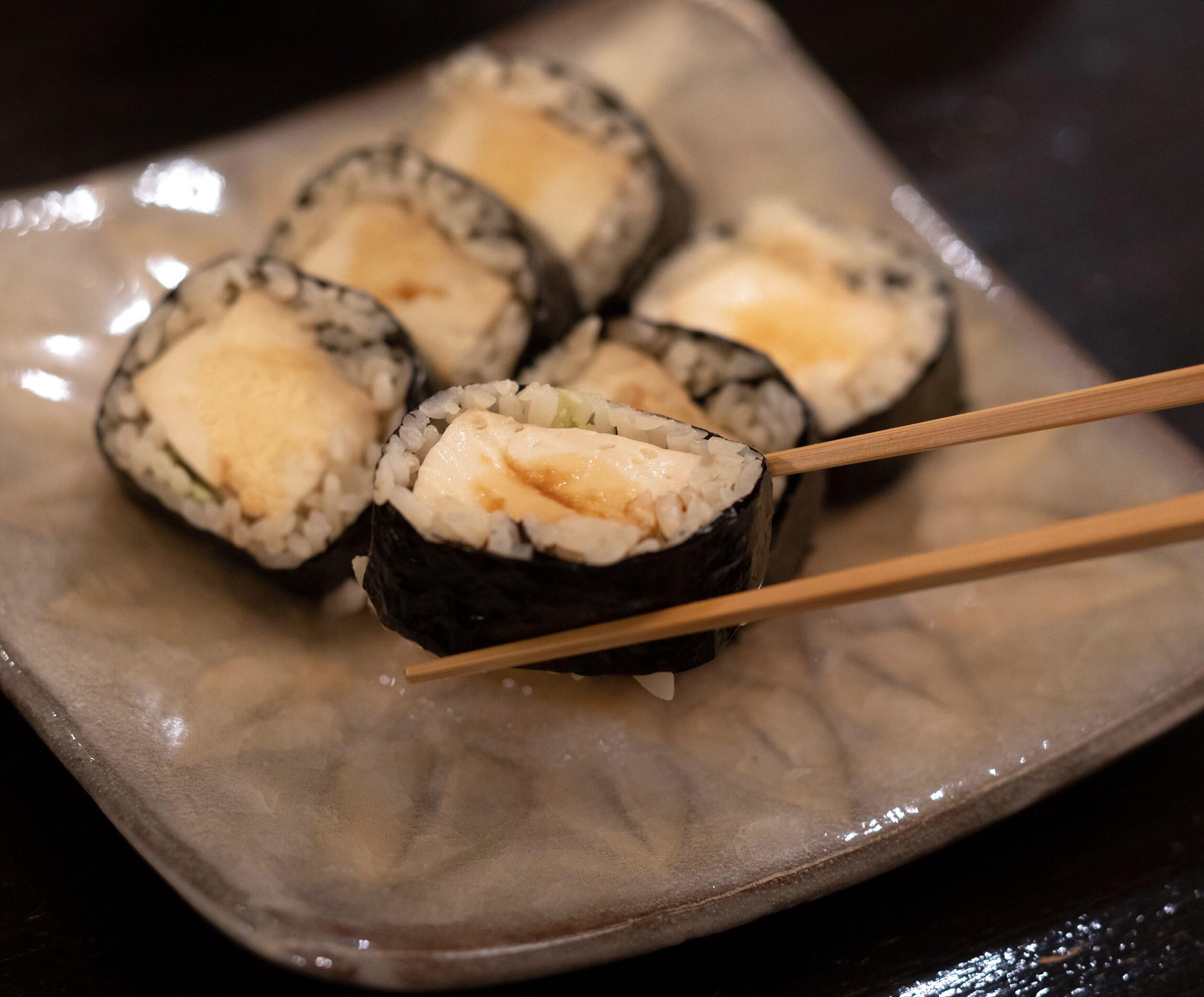 おでん屋さんの“とうめし”から着想を得たのは、なんと煮豆腐を具にしたのり巻き!dancyu11月号「おにぎりとのり巻き」特集内「ちょい呑みの細巻き ガチ呑みの細巻き」で、“呑めるのり巻き”を伝授してくれた京都の人気酒場「乍旨司(さしす)」料理長・庄子正将さんに、誌面では紹介しきれなかった酒のアテにぴったりのごちそうのり巻きを、さらにもう一品教わりました。