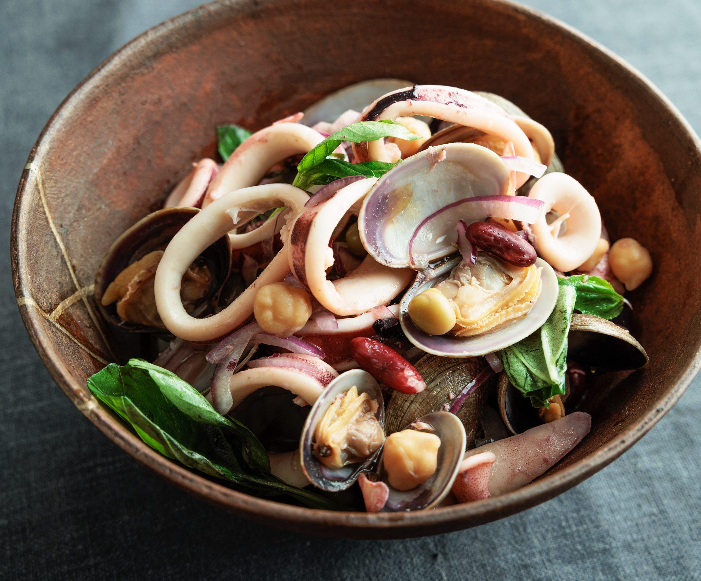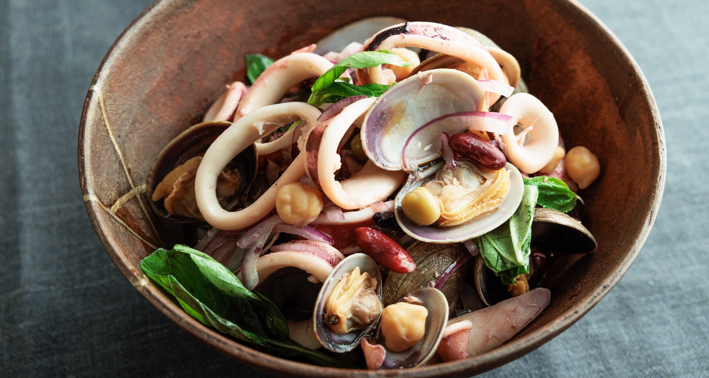 魚介の旨味が詰まった、食べごたえ抜群の温かいサラダです。ワインのお供にもお薦めです。秋に旬を迎える食材を巧みに使いながら食べごたえのある主菜を料理家の堤 人美さんに教えてもらいました。
