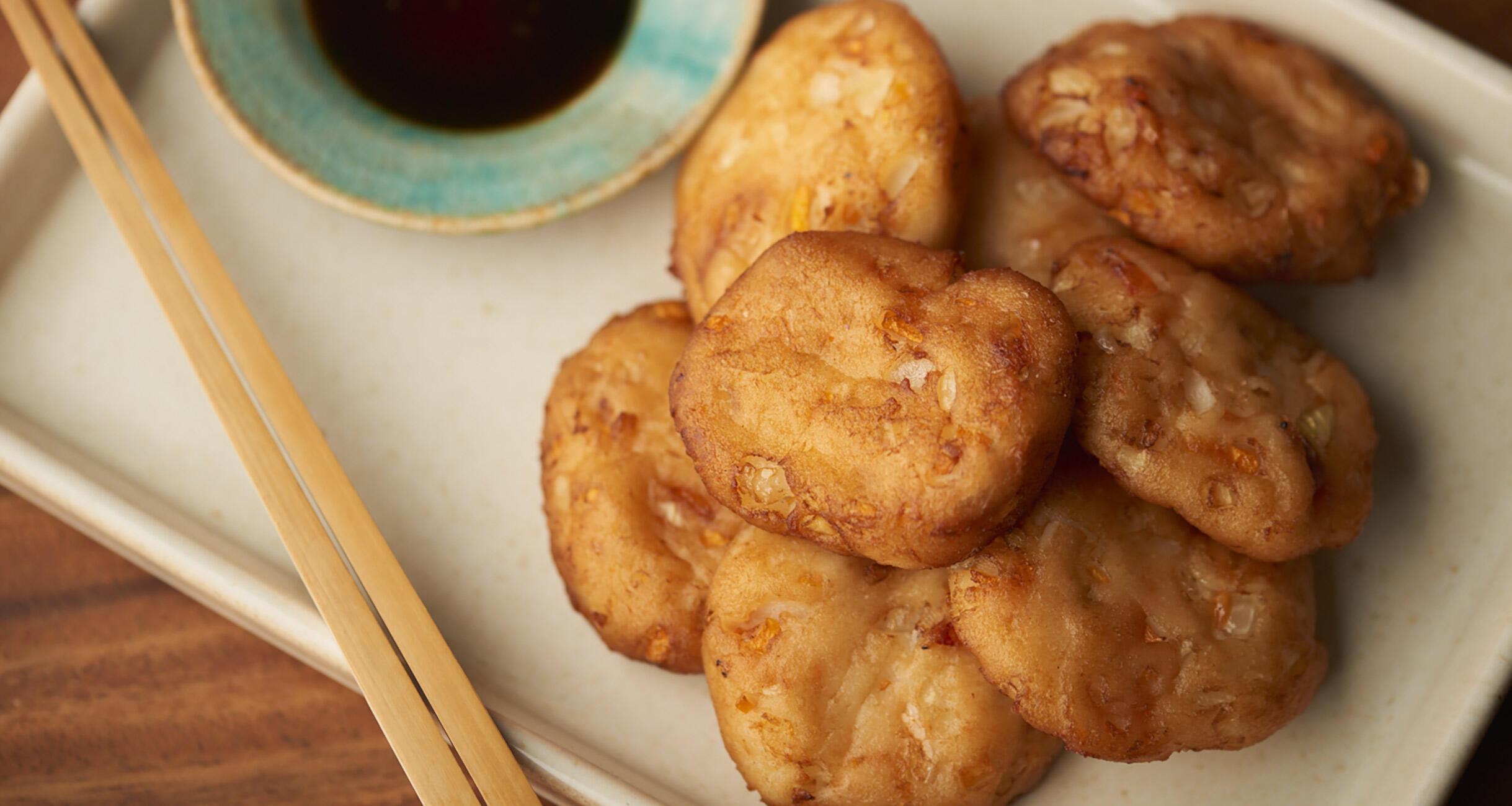 魚のすり身でつくるさつま揚げをはんぺんでつくりました。軽い口当たりでふわふわに仕上がり、桜海老の香りが鼻に抜けます。食と酒と旅をこよなく愛する文筆家・ツレヅレハナコさんに、焼酎のお湯割りに合う季節のおつまみを習いました。