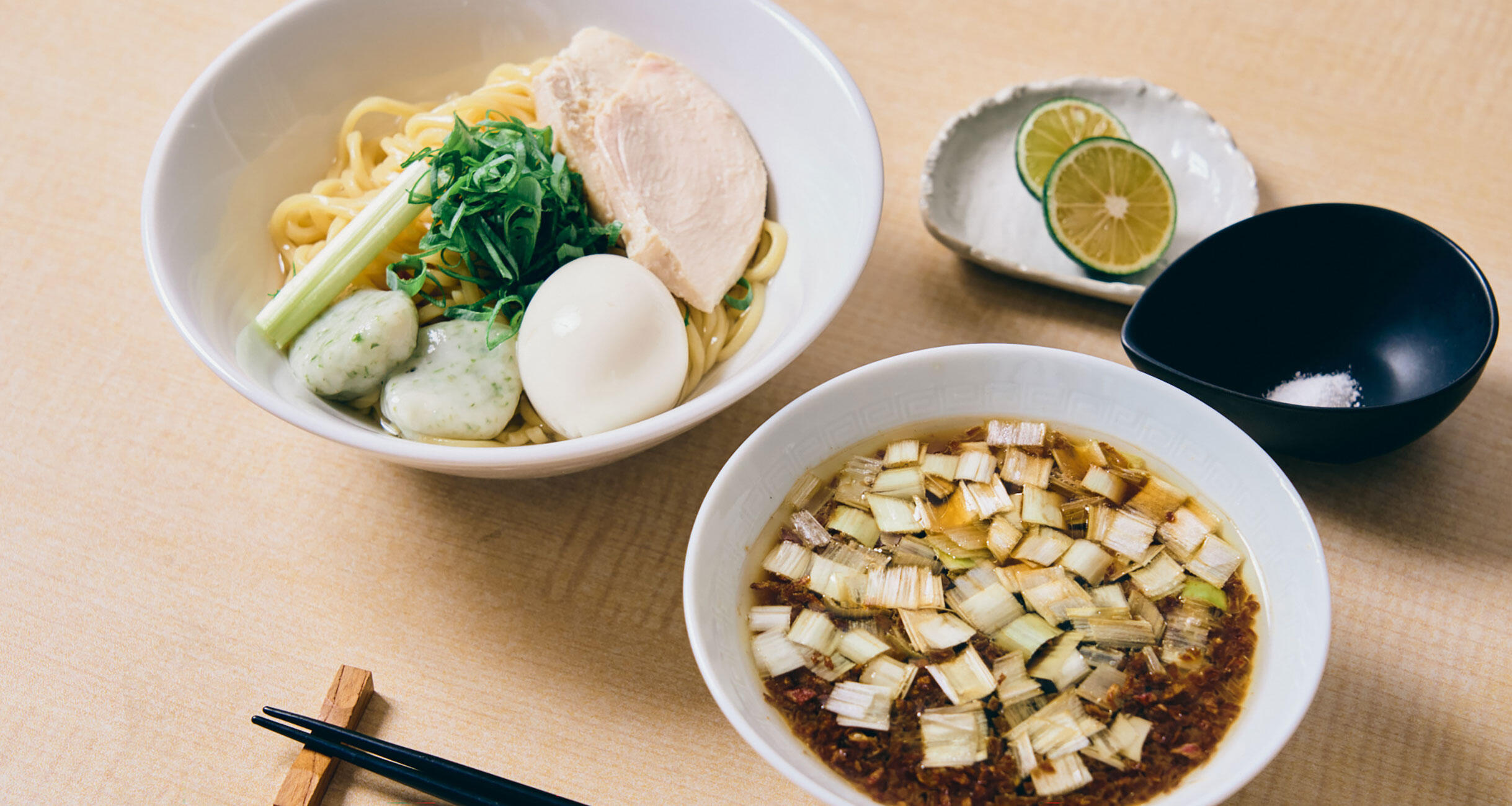 『スープを飲ませるもの』だったラーメンは、蕎麦やうどんのように麺の喉越しや小麦の風味を楽しむものという発想の転換だと思います。先ずは麺のくっつきを防止する役目をも担う昆布水を纏った麺に軽く塩を振って麺を楽しむ。そもそも昆布の旨味を纏っているわけだからそのままでも充分美味しい。お店によっては柑橘類のオプションもあるので途端にお洒落な味にも変貌。前半は塩で食べ、後半にはつけ汁を巻き込む。お店によっては熱々の石を投入してくれる神様のような店もあるので温度差問題も一気に解決!