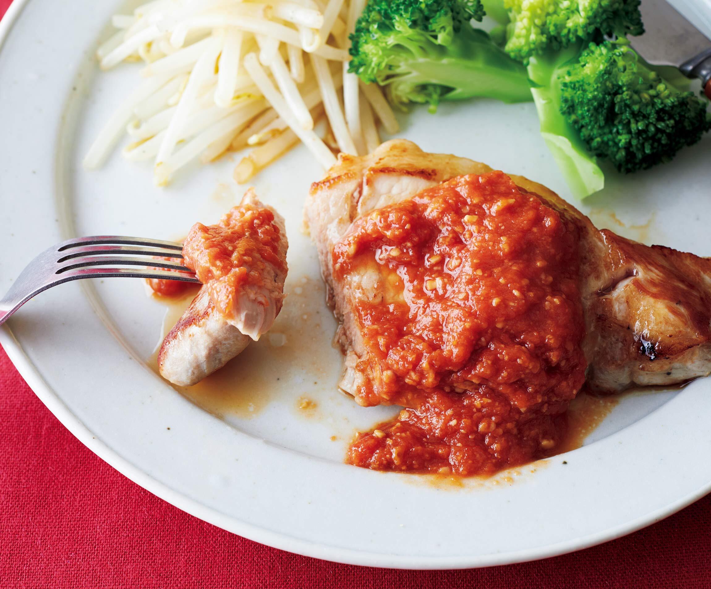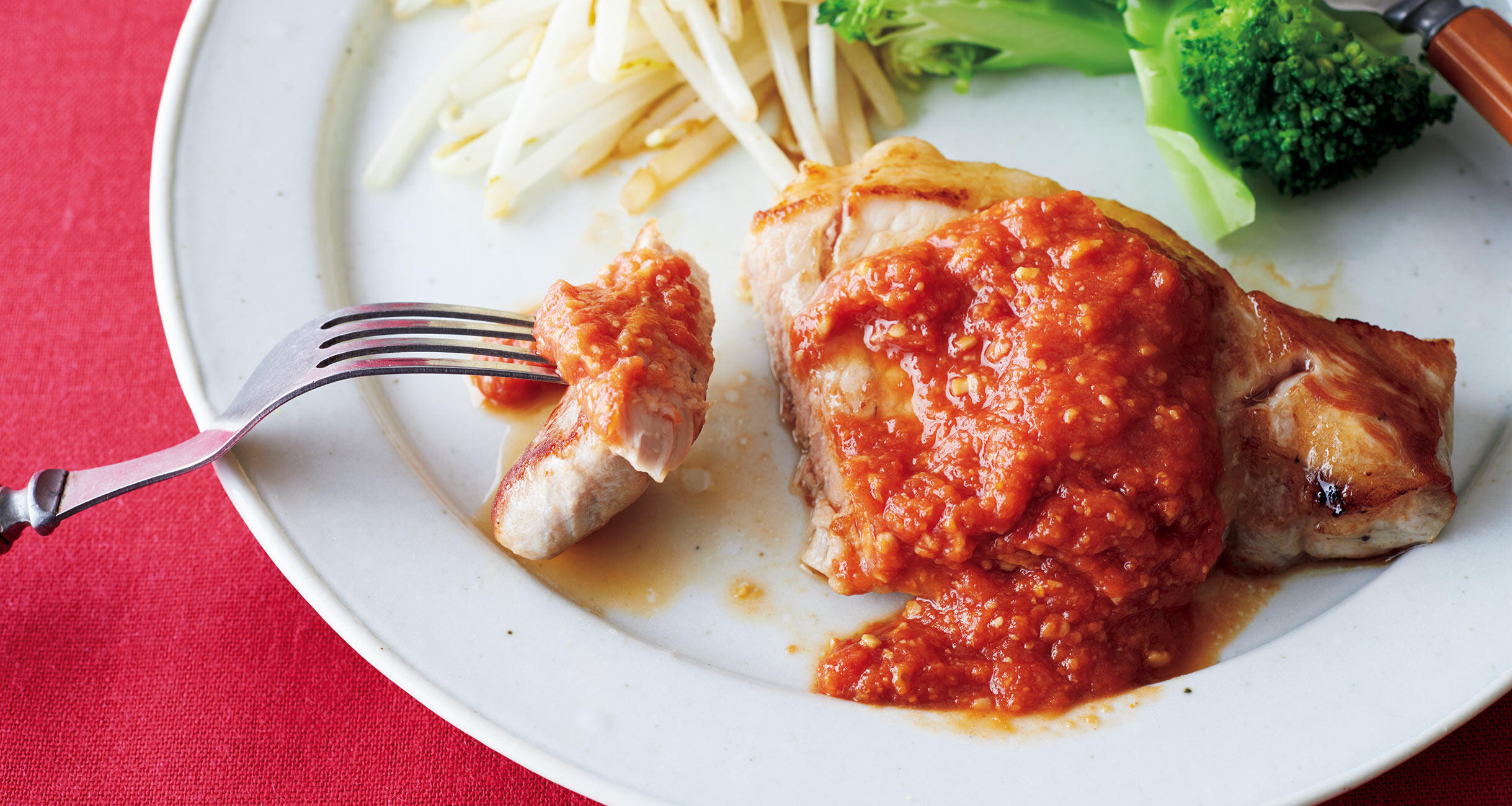 トマトをピューレにして味噌を加えると、濃厚な旨味とやわらかな酸味が美味しいソースになります。シンプルなポークソテーも一気にご馳走に!たっぷりかけて召し上がれ。複雑で深い旨味を持つ味噌を使いこなすレシピを、料理研究家の大庭英子さんに教えてもらいました。