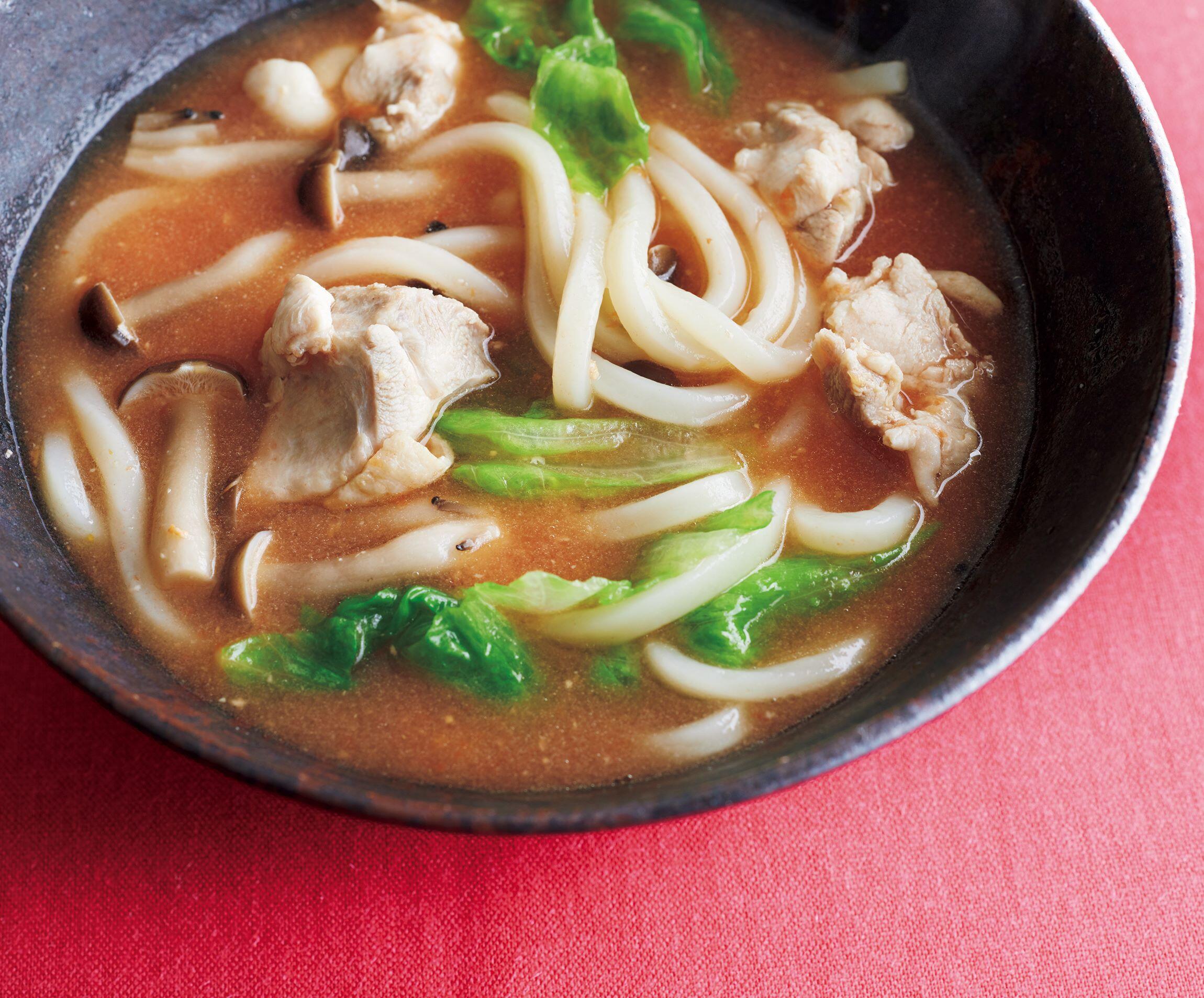 鶏肉を煮たスープをそのまま利用。トマト味噌も加わって、旨味たっぷり。レタスのシャキシャキとともに!複雑で深い旨味を持つ味噌を使いこなすレシピを、料理研究家の大庭英子さんに教えてもらいました。