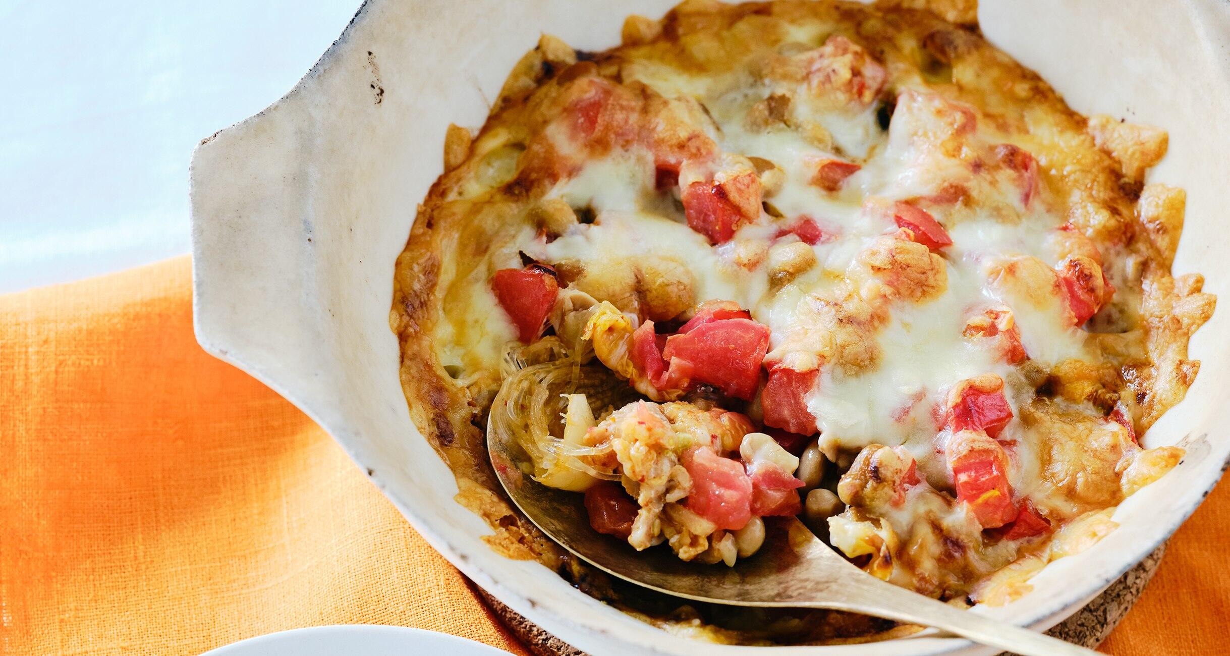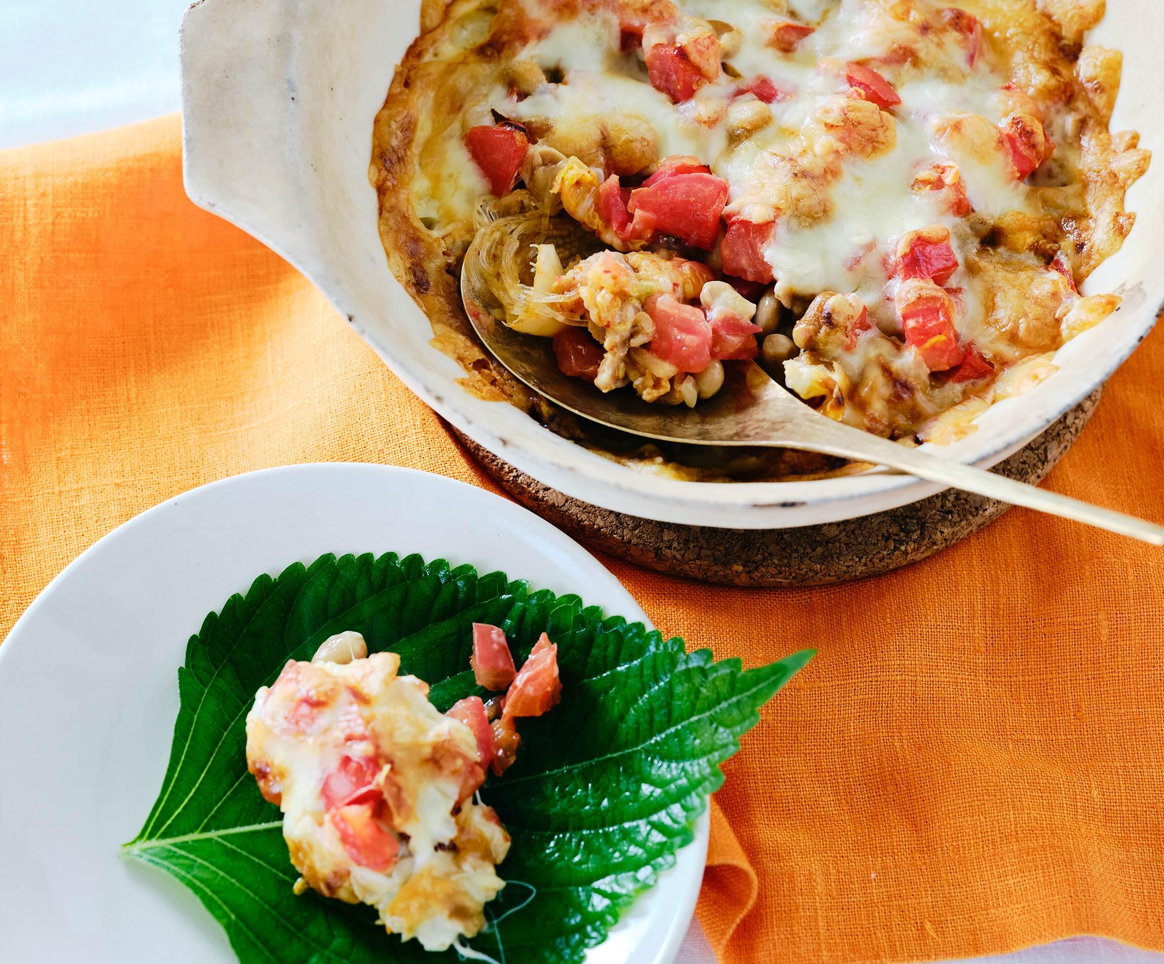 納豆と豚肉とキムチという鉄板の組み合わせを焼いたグラタン。えごまの葉で巻くと、一気におつまみレベルが上がって、ビールがぐんぐん進む!酒と料理を愛しすぎる料理家、スヌ子こと稲葉ゆきえさんが提案する、グラタンつまみをご紹介します。
