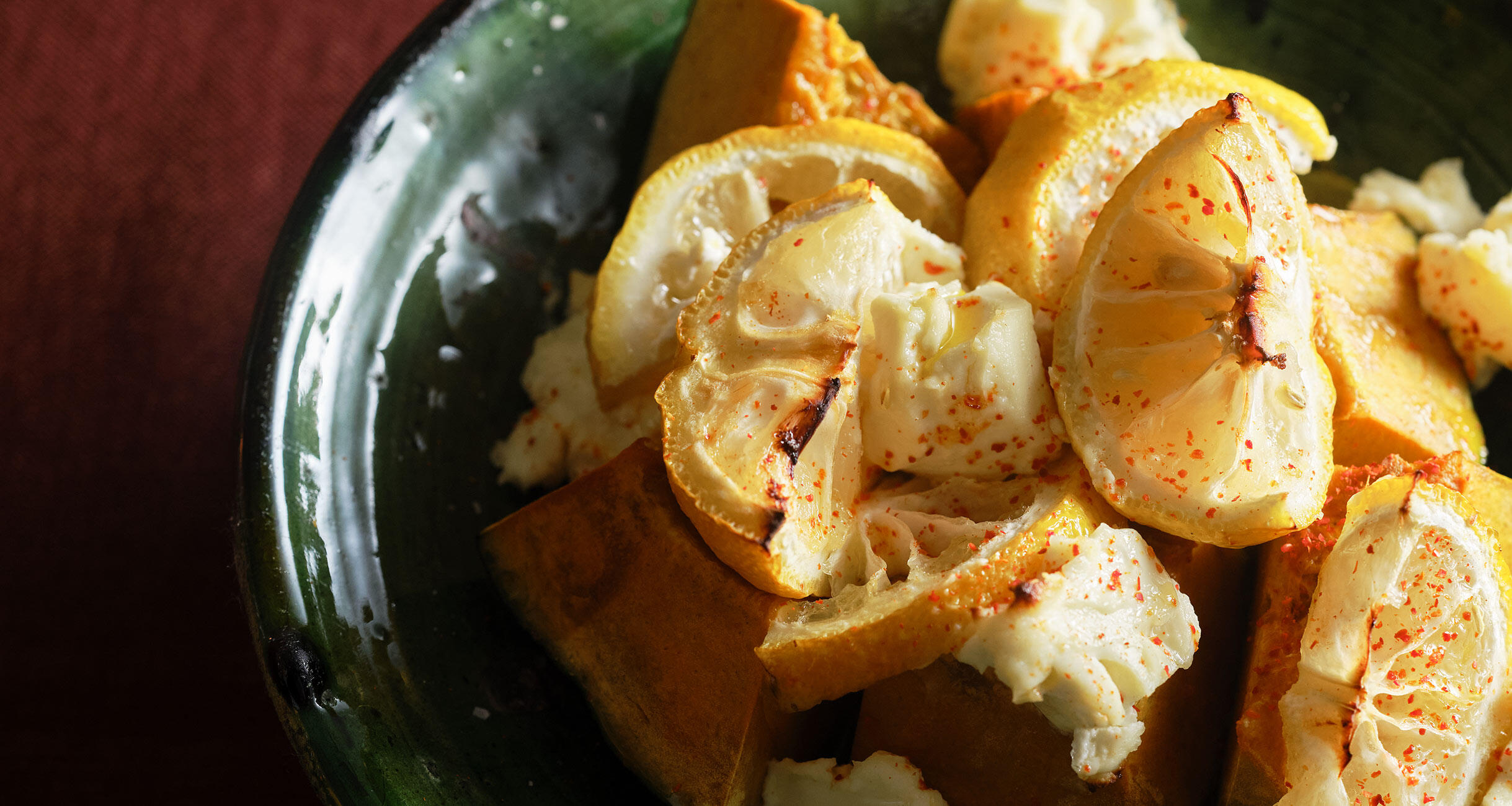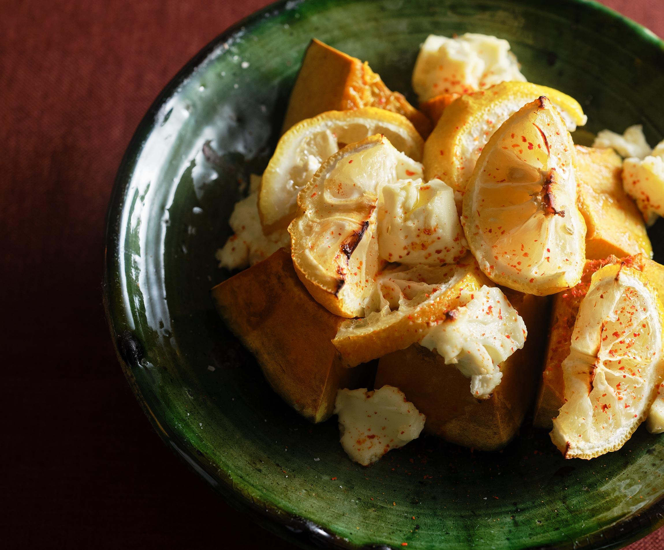 皮ごとじっくり焼いた柚子の果汁が、かぼちゃにしみ込むご馳走デザート。クリームチーズのコクと柚子の優しい酸味、ぱらりとふった一味唐辛子の辛味が相まって、じんわり旨くて酒を呼ぶ。酒と料理を愛しすぎる料理家、スヌ子こと稲葉ゆきえさんが提案する、グラタンつまみをご紹介します。