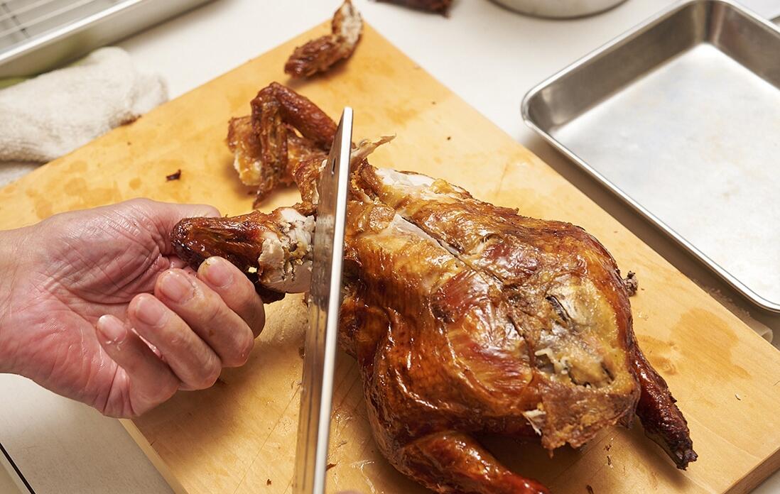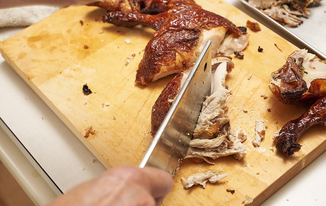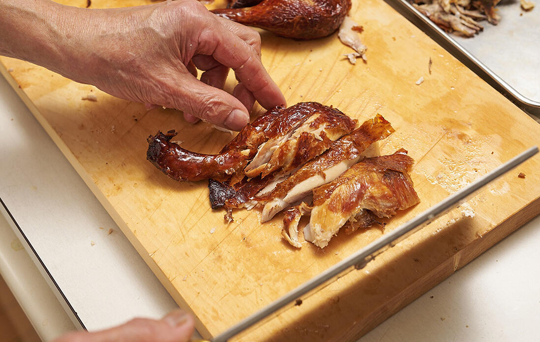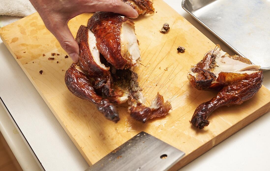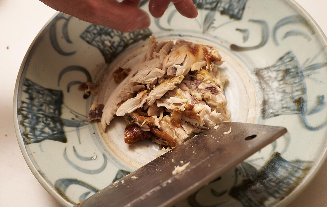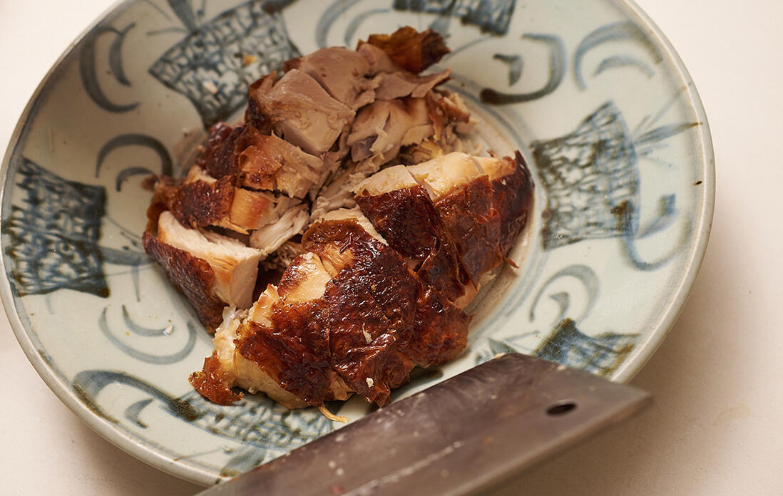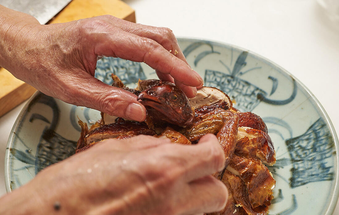 中国料理は「足し算の料理」と言われるが、それは単に食材を足すことに限らないことをこの料理は教えてくれる。メインで使う食材は、鶏のみ。そこに漬ける、蒸す、燻す、揚げると調理法を重ね、外はパリっと歯ざわりがよく、中はしっとりジューシューに仕上げる。燻すときもチップに頼らず、あらゆるものを総動員して“おいしい煙”をつくり出す。それはすべて鶏の味わいを最大限楽しむという、ただ一点に向かっている。