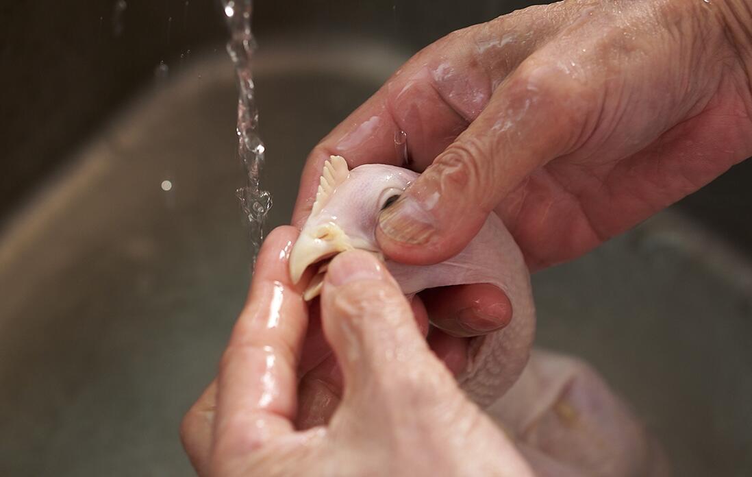 *2 頭付き(なければ首付き)を使うのが望ましいが、手に入りにくければ頭、首はなくてもよい。今回は、東京・五反田の鶏肉専門店「信濃屋」(TEL:03‐3491‐9320)に頼んで頭付きにしてもらい購入(要事前相談)。