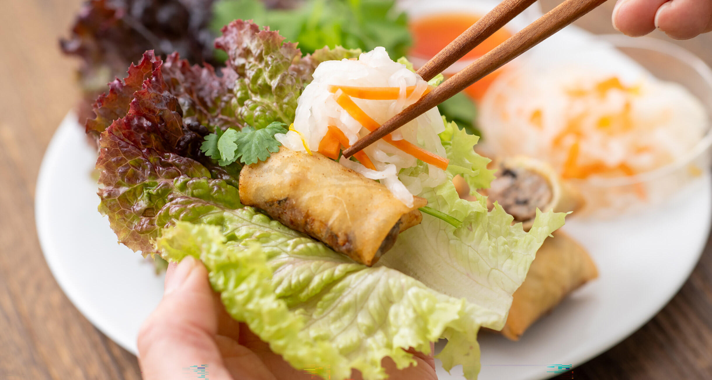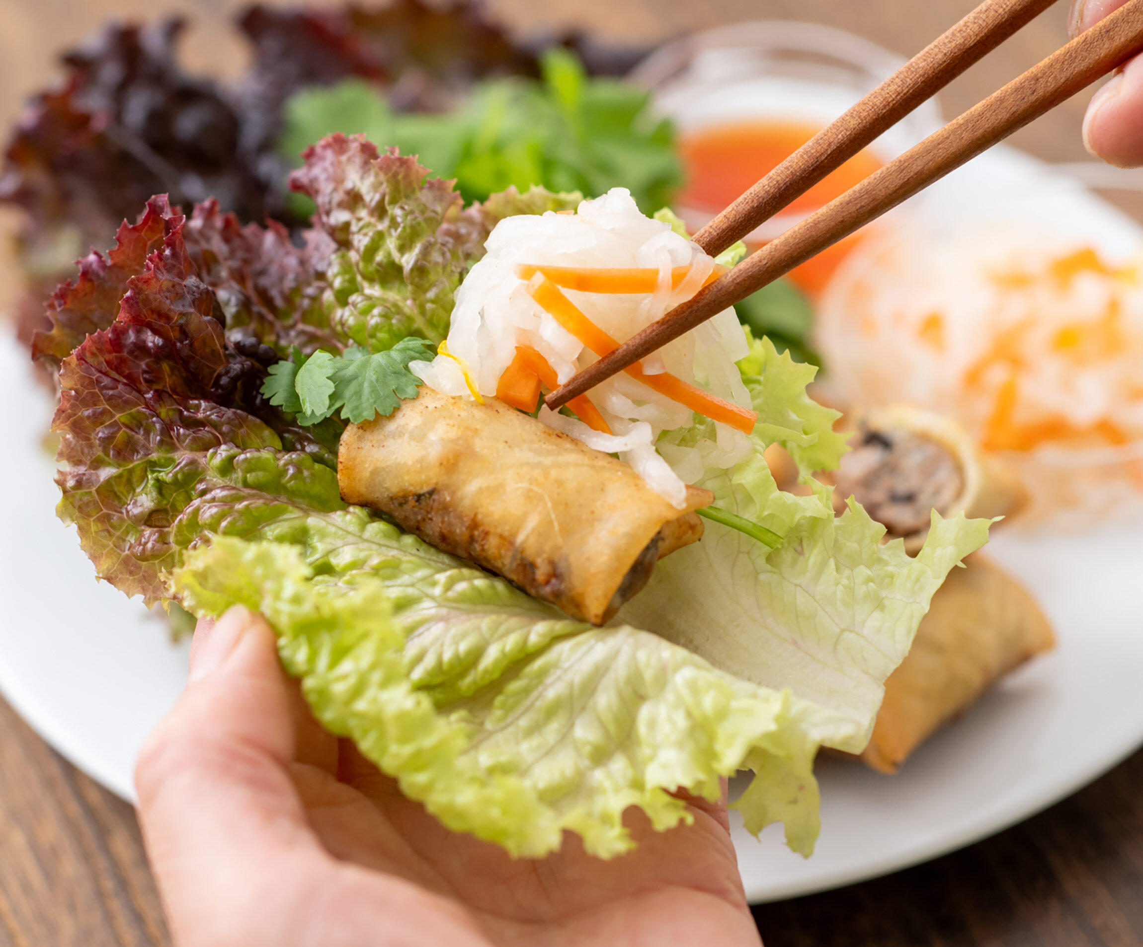 「いえいえ、“紅白なます”が残ったときも、“春巻き”がおすすめなんです。といっても、今回は具材にはしません。ベトナム風の“揚げ春巻き”をつくって、なますと一緒にレタスで巻いて食べるんです。これがホントにおいしいんですよ!」と尾身さん。