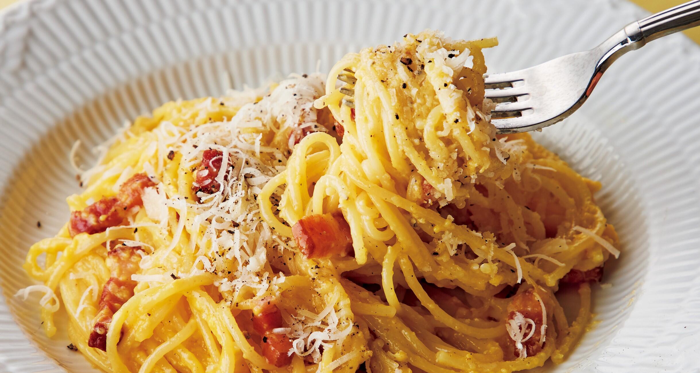 ローマ生まれのパスタ。カルボ(炭)に見立てた黒胡椒がアクセント。さらに、麹のもつかすかな甘味が全体をまろやかにまとめます。料理研究家の大庭英子さんから、発酵食品をプラスして旨味をアップさせる発酵パスタレシピを習いました。