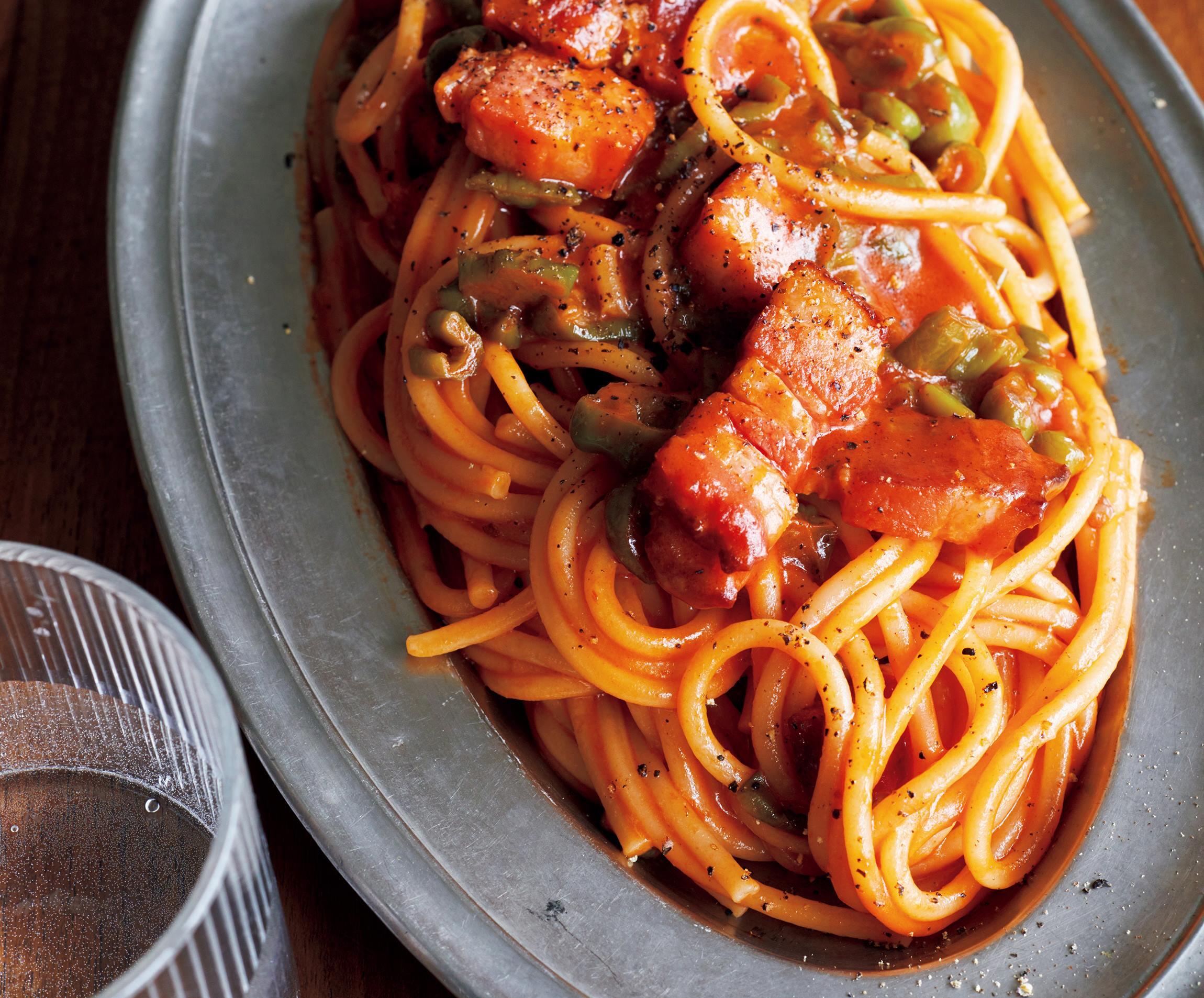 潔くも、具材は大ぶりに切ったベーコンとししとうだけ。シンプルなれど贅沢な、これぞナポリタンの新境地!料理研究家の坂田阿希子さんに、ご自身が大好きだという太麺パスタのレシピを習いました。