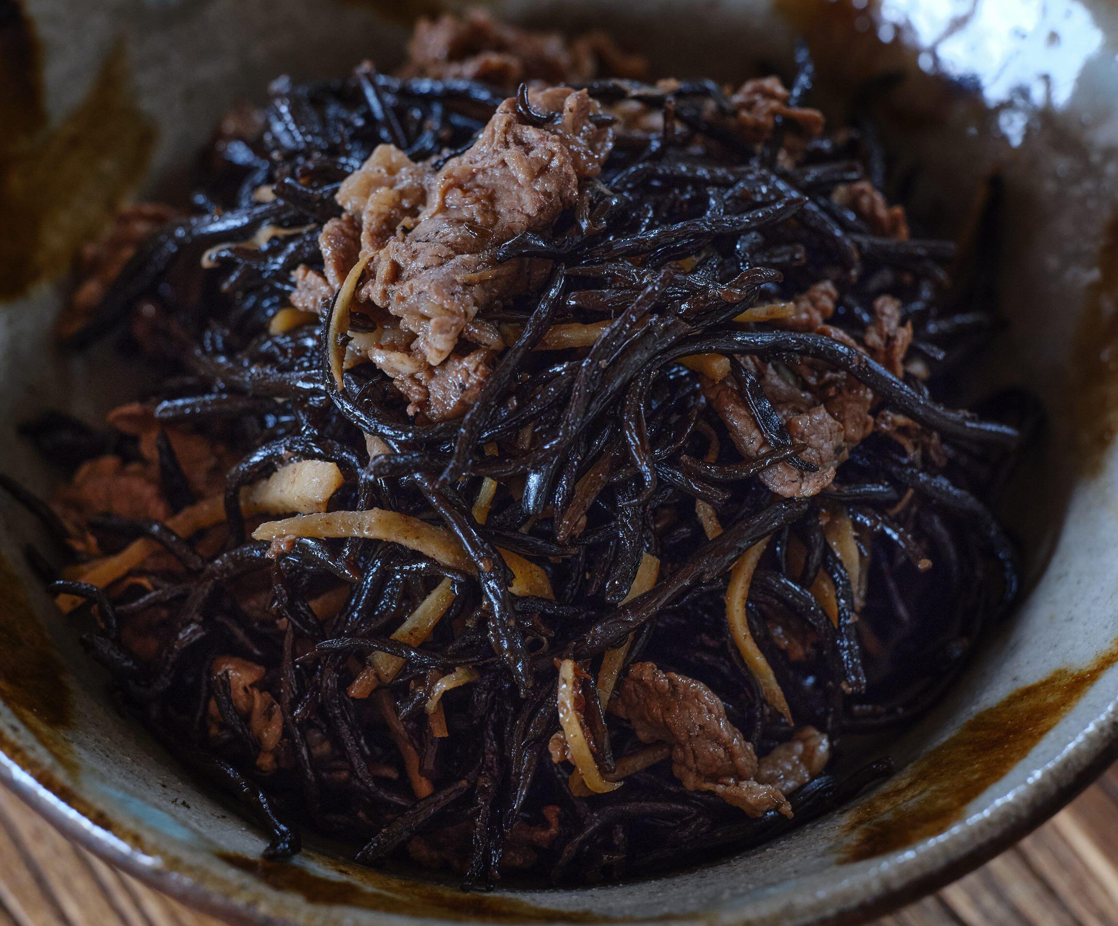 ひじきを加え、Aを順に加える。汁気がほぼなくなるまで炒め煮にする。途中、味をみて足りないようなら、醤油(分量外)で味を調える。