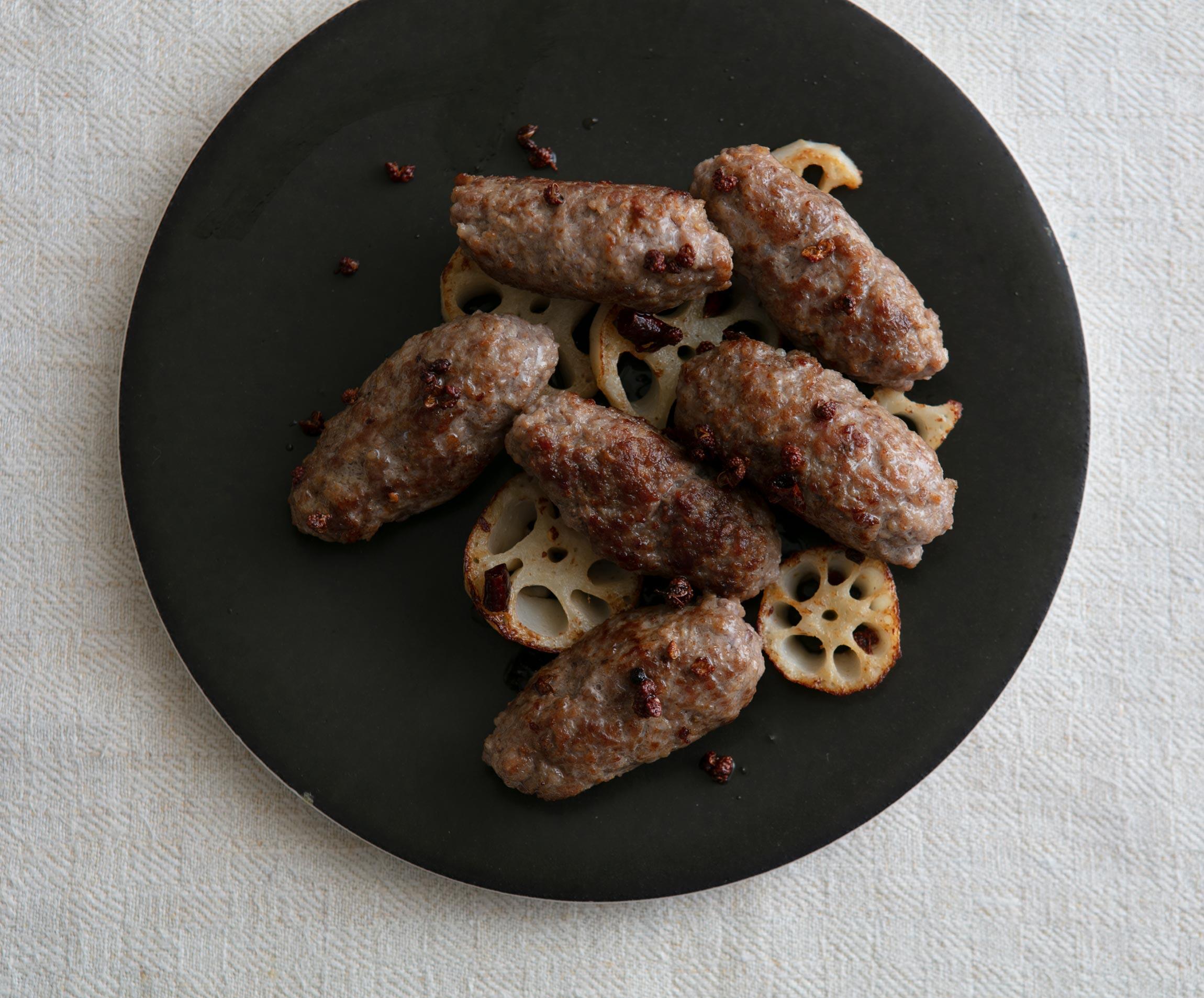 中華バージョンもまた旨し。花椒と五香粉の香り、赤唐辛子の辛味がいいアクセントだ。サルシッチャの脂をまとった甘いれんこんの歯ごたえがたまらない。