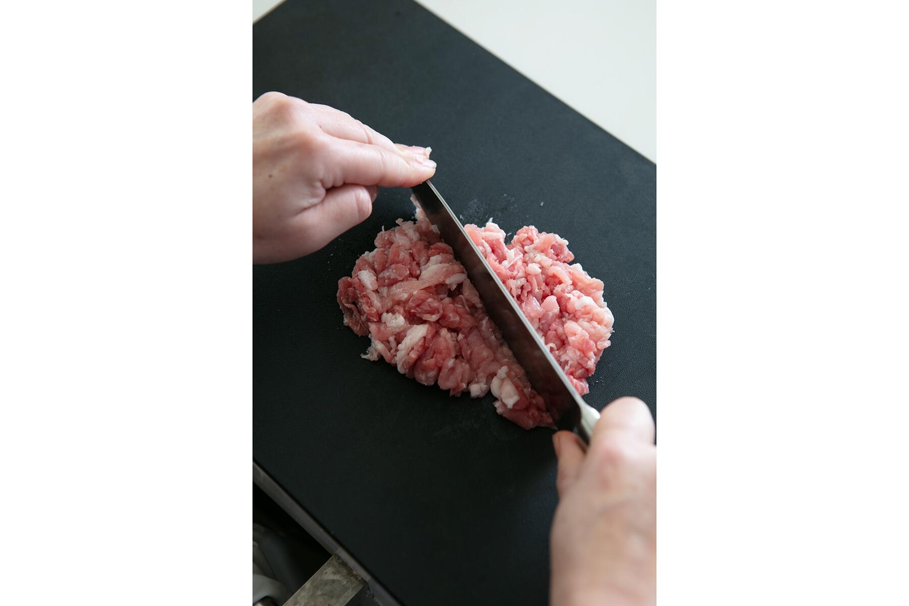 もう少し肉々しい、粗挽きのサルシッチャがつくりたい場合は、家で豚肉を挽いてつくることも可能だ。そうはいってもフードプロセッサーで挽くのはどうもイマイチ。
