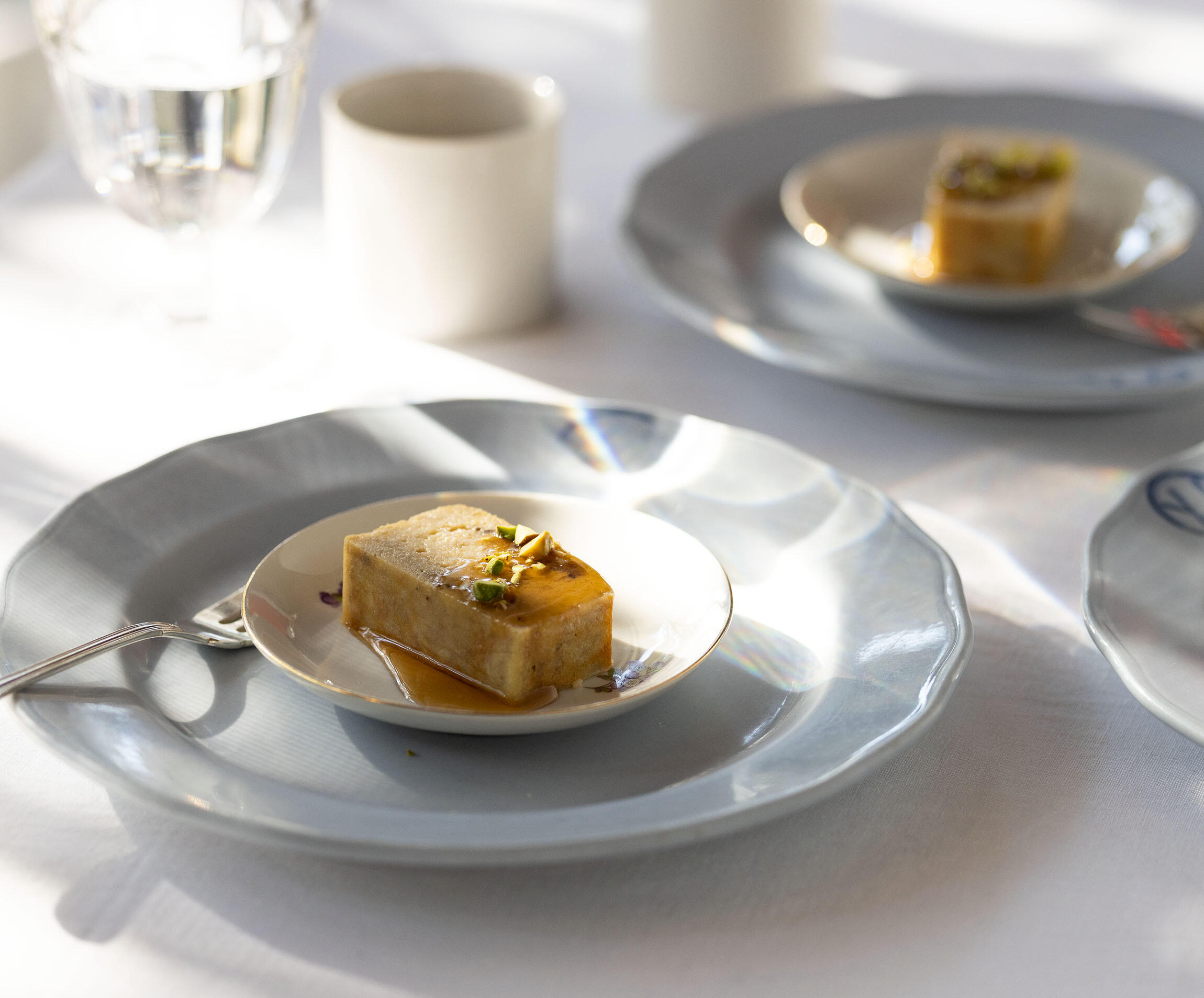 粗熱が取れたら冷蔵庫で冷やす。切って器に盛り、メイプルシロップ少々をかけ、砕いたナッツをのせる。