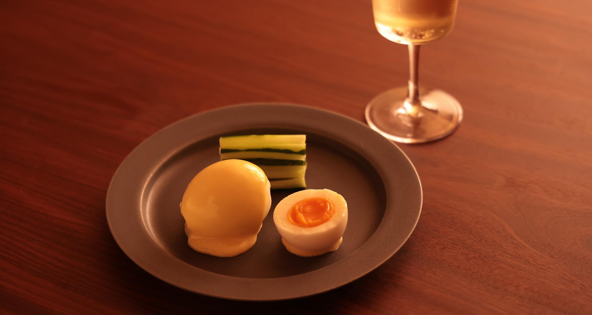 今回は卵と相性のいいシャンパーニュを合わせました。ウフマヨはゆで卵にソースをかけるだけで夜は延々と続きちょっと危険ですね(笑)。
