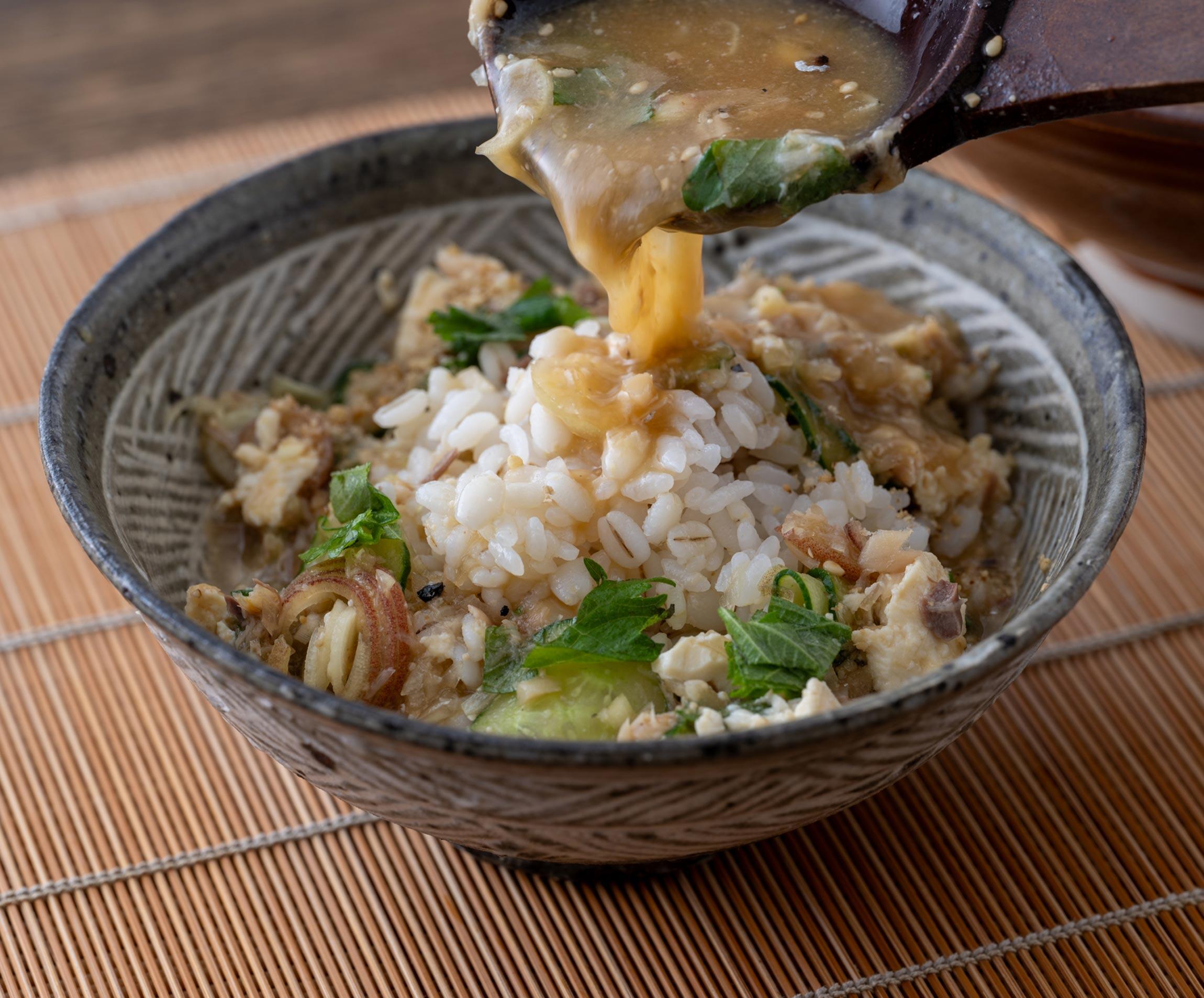 こうして、できあがった冷や汁は、濃厚な味わいなのにさっぱり!干物の旨味をしっかり感じさせながら、焼き味噌とすりごまの香ばしさがたまらない。麦飯にかければ、サラサラと軽やかで、あっという間に完食してしまった。