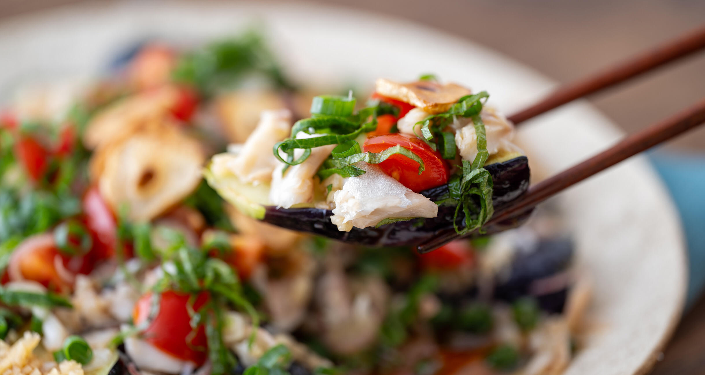 「タタキと聞いて思い浮かぶのって、鰹じゃないですか。でも、高知県東部の安芸市には“なすのタタキ”があるんですよ!素揚げしたなすを並べて、アジの塩焼きのほぐし身をのせて、薬味をたっぷりのせてポン酢をかけたら出来上がり。安芸はなすの大産地で、薬味のみょうがや生姜も特産品。アジもよく釣れるし、ある食材を組み合わせることで、“鰹のタタキ”に見立てたんでしょうね」