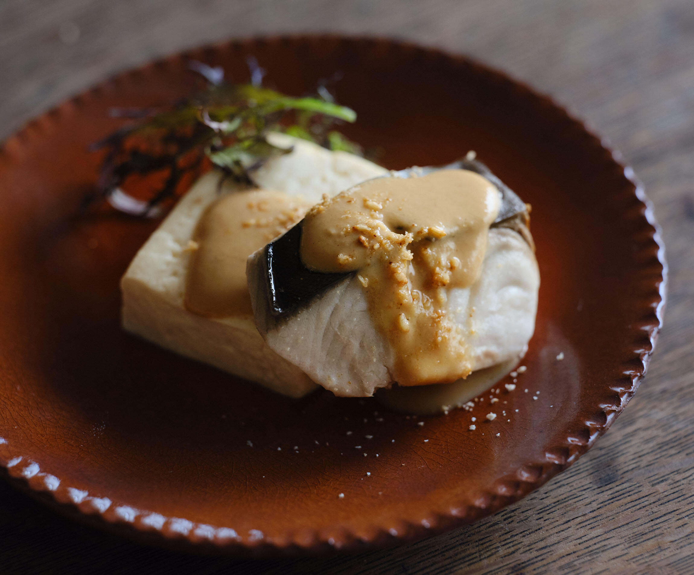 | ★ 蒸し魚と豆腐の胡麻酢ダレ和え | |