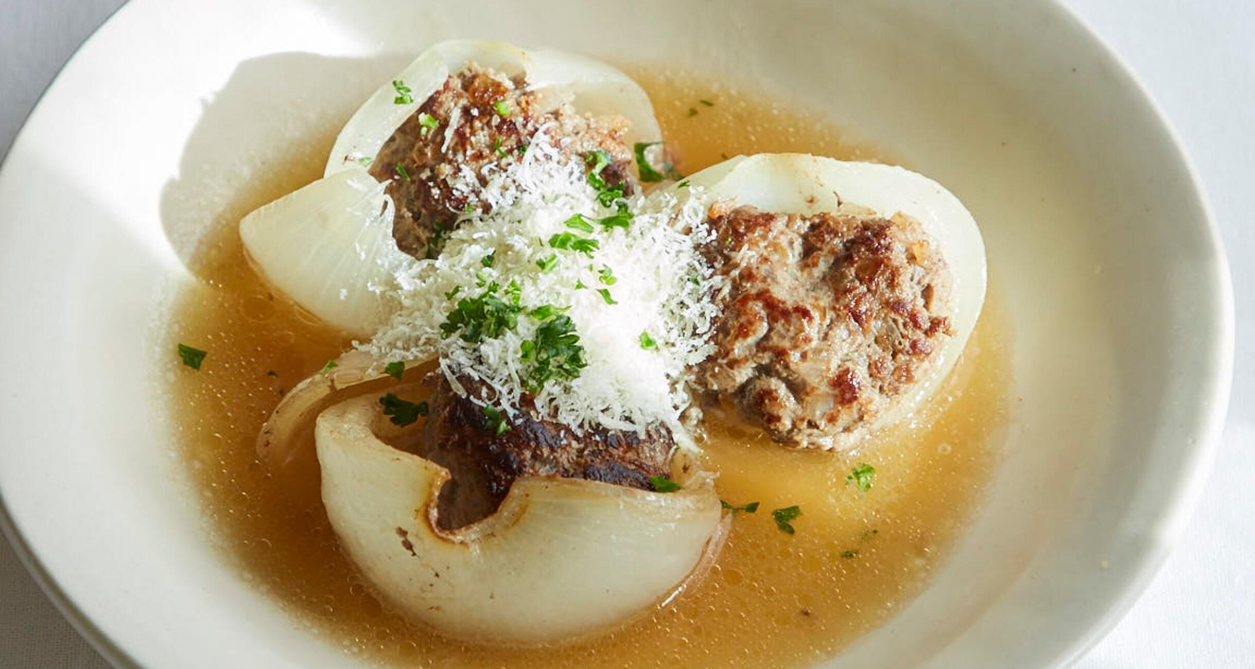 トロリとほどける“新玉ねぎの肉詰め”