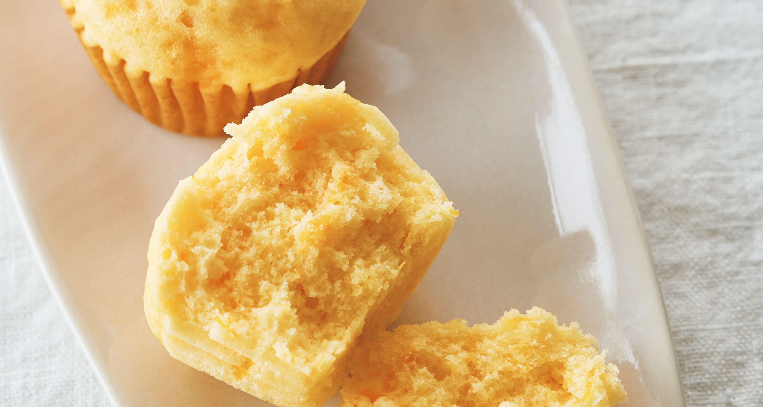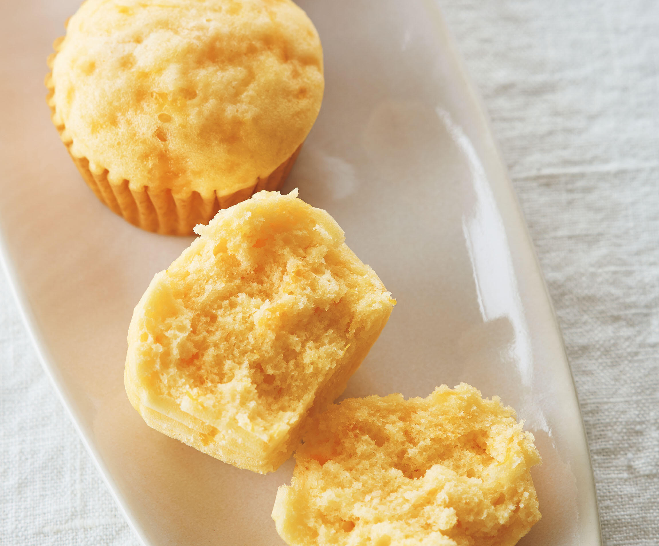やさしい食感と色合いの、かわいらしいおやつです。酸味はほとんど感じず、生地全体におだやかな柑橘の香りが漂います。フルーツ缶でつくるスイーツをお菓子研究家の本間節子さんに教えてもらいました。