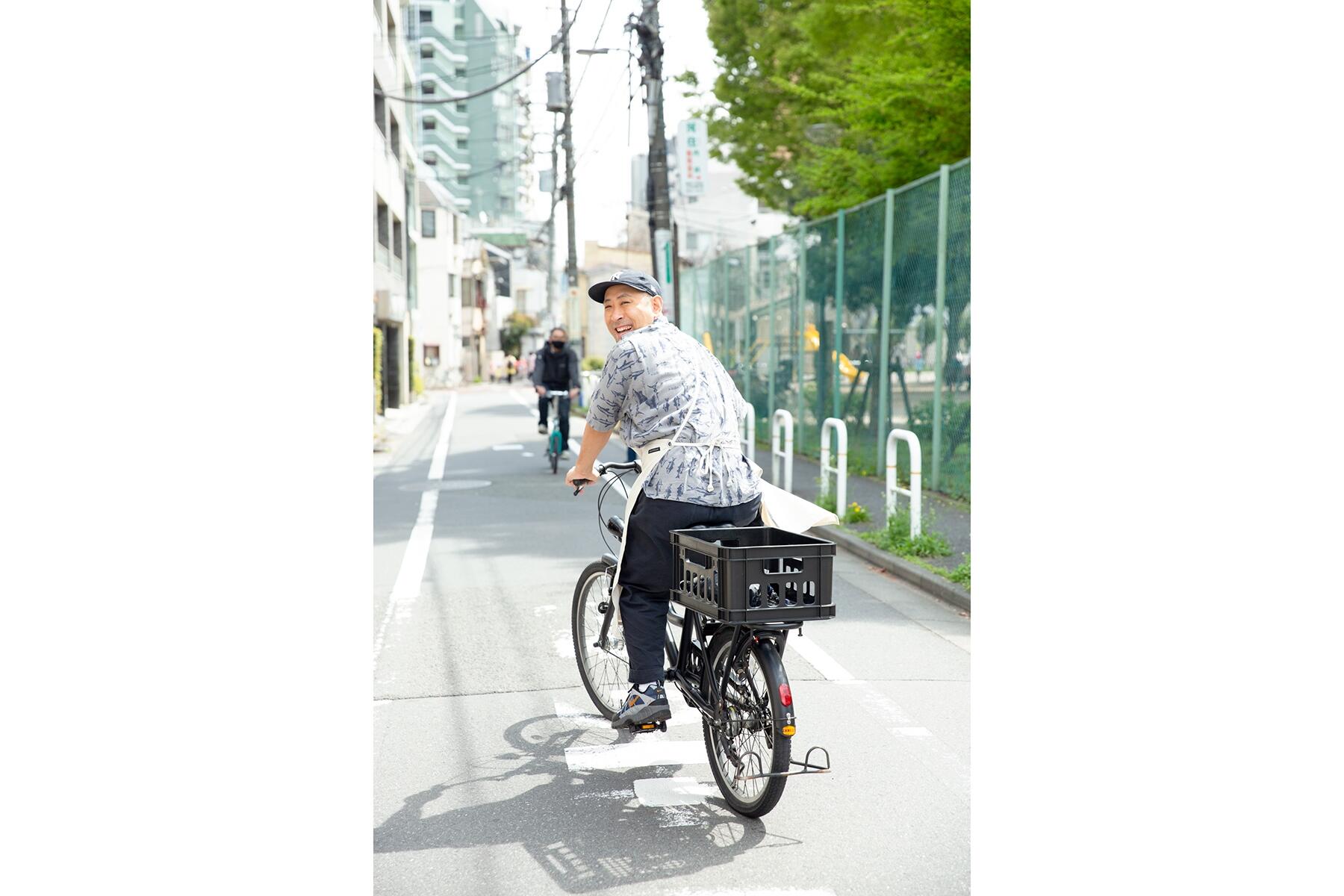 料理家三代目として常に意識しているのは「調味料は誰でも知っているもの、食材は地元のスーパーや八百屋さんで売っているものを使う」という祖母の教え。仕事だけじゃなくプライベートでも祖母の言葉通り、日々、愛車のチャリで実践しています。