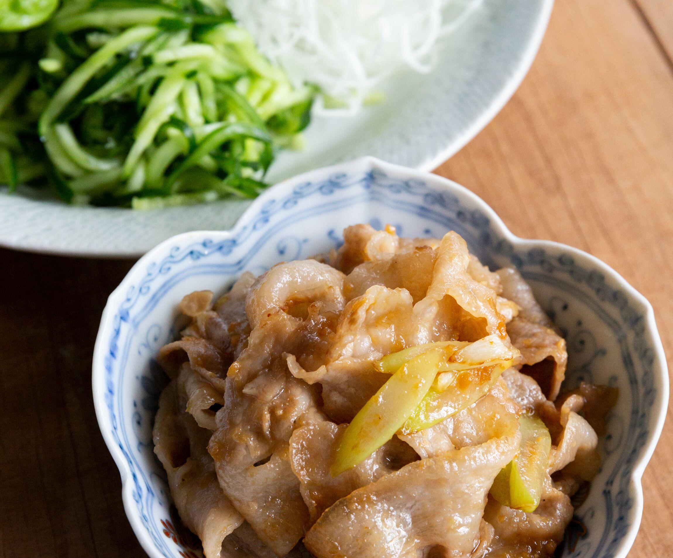 豚肉をゆでてから炒めるのは、バラ肉の余分な脂を落としたいから。このひと手間で、冷めても脂が白く固まらず、食べやすい。