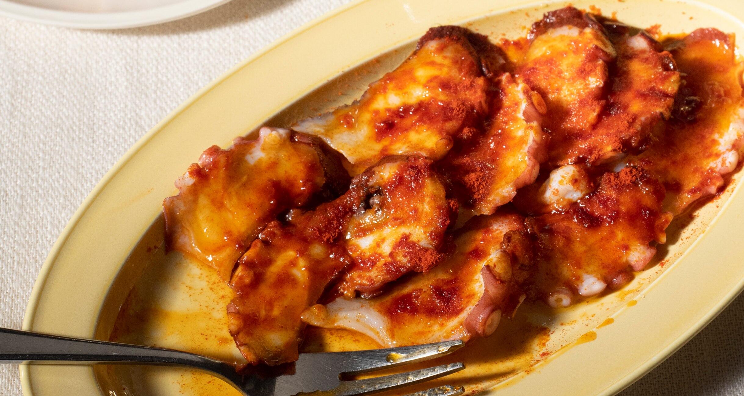にんにく、オリーブオイル、塩少々(たこの塩味が薄い場合)を混ぜ、①の上にかけ、スプーンの背などで全体に広げる。