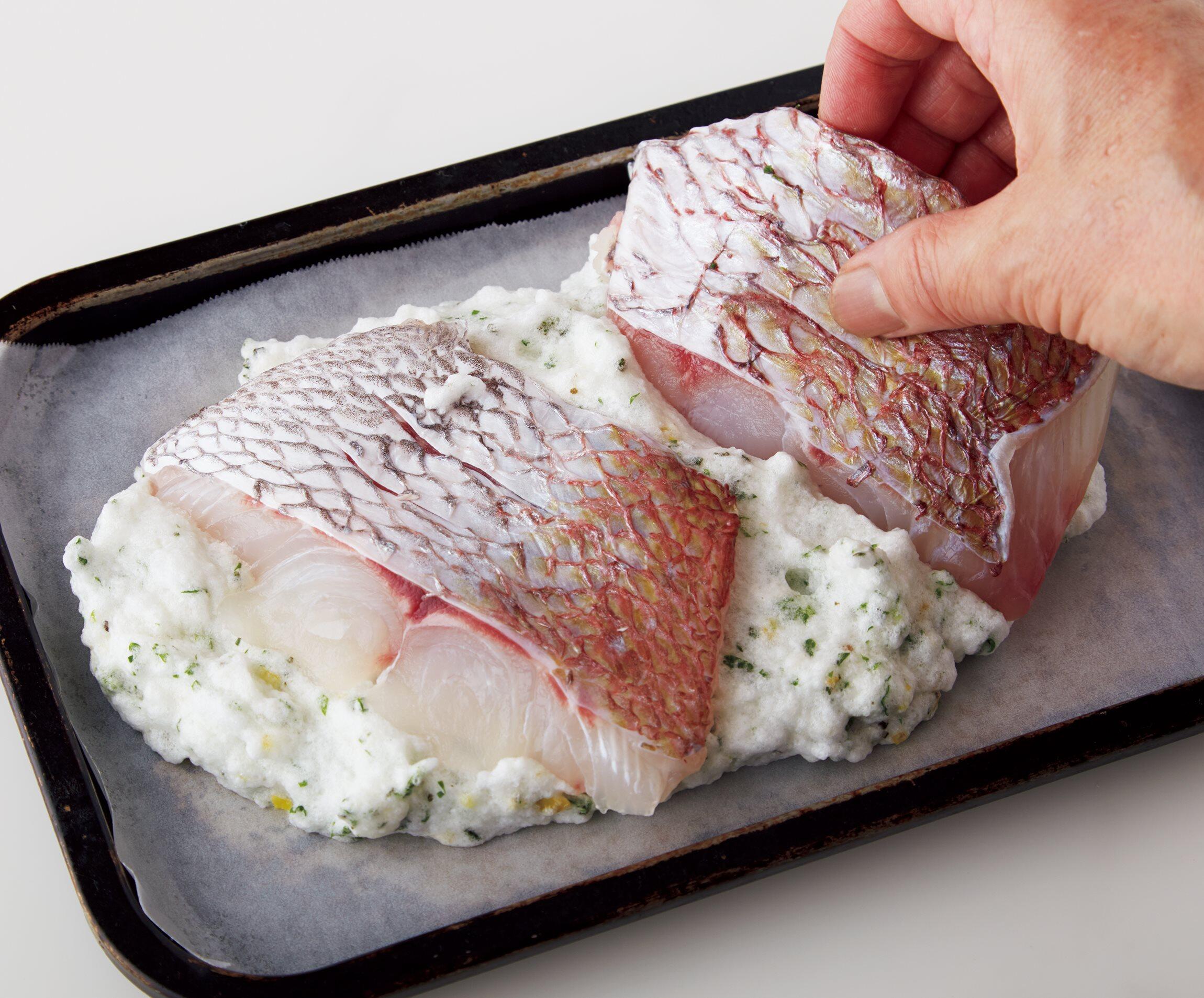みずみずしい食べ心地の“魚の洋風塩釜焼き”