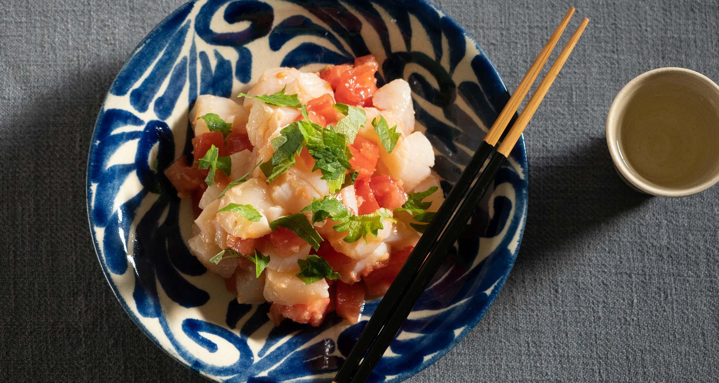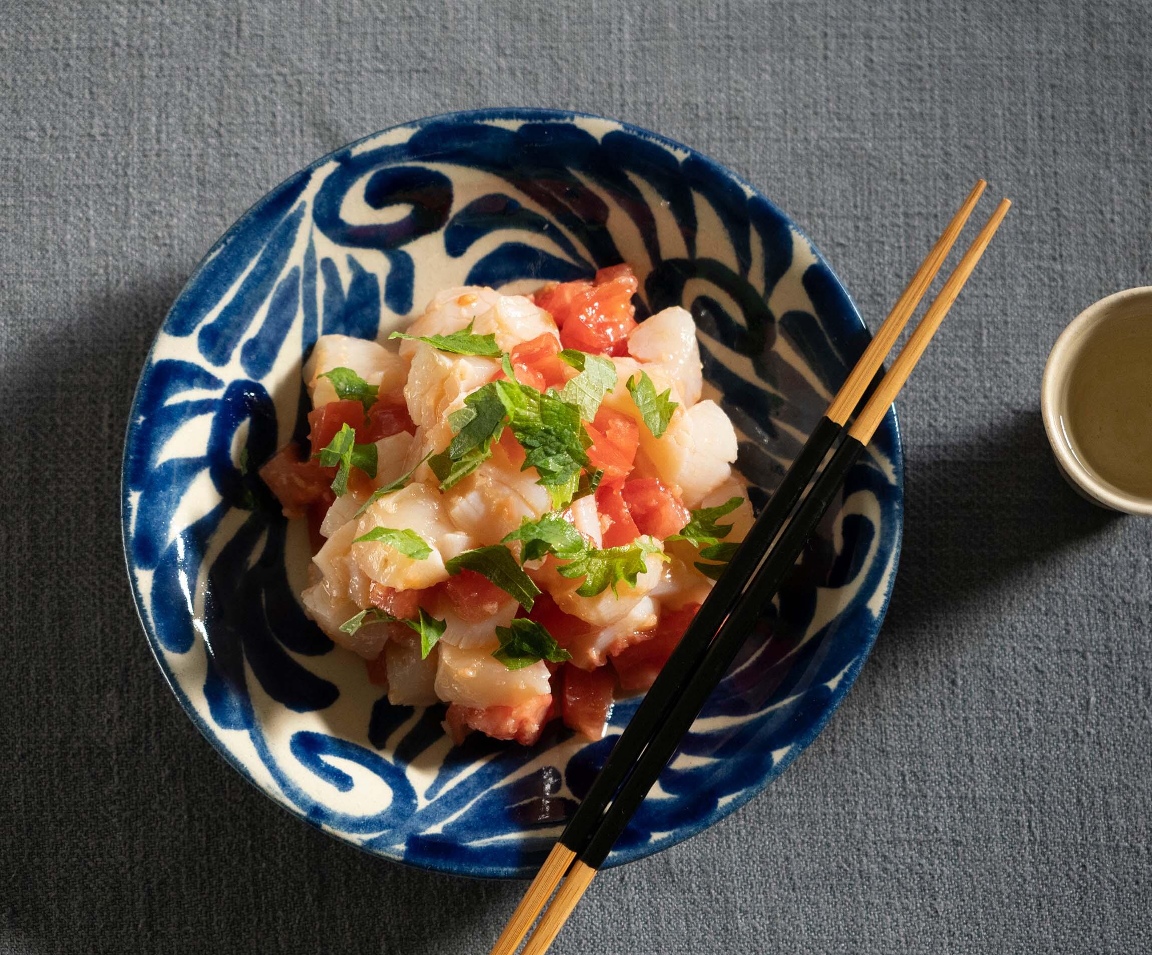 ゆでた帆立ならではの甘味を、トマトと梅干しの酸味がキュッと引き立てます。「飲み友」の料理研究家、上田淳子さんとしらいのりこさんに夏の晩酌がテーマの自慢のつまみを披露し合ってもらいました。