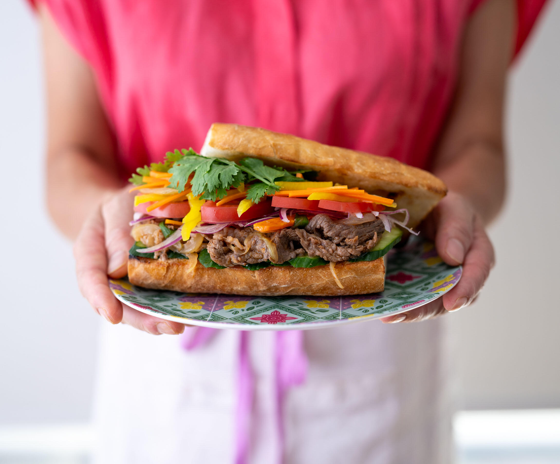 華やかな彩りにもそそられつつ、出来上がった“プルコギバインミーを”パクリ。これは期待以上のおいしさ!牛肉の濃いめの甘辛い味つけとたっぷりの野菜、酸味のきいたなます、たっぷりのパクチー、香ばしいバゲット……と、幾層もの味の重なりが快感なのだ。