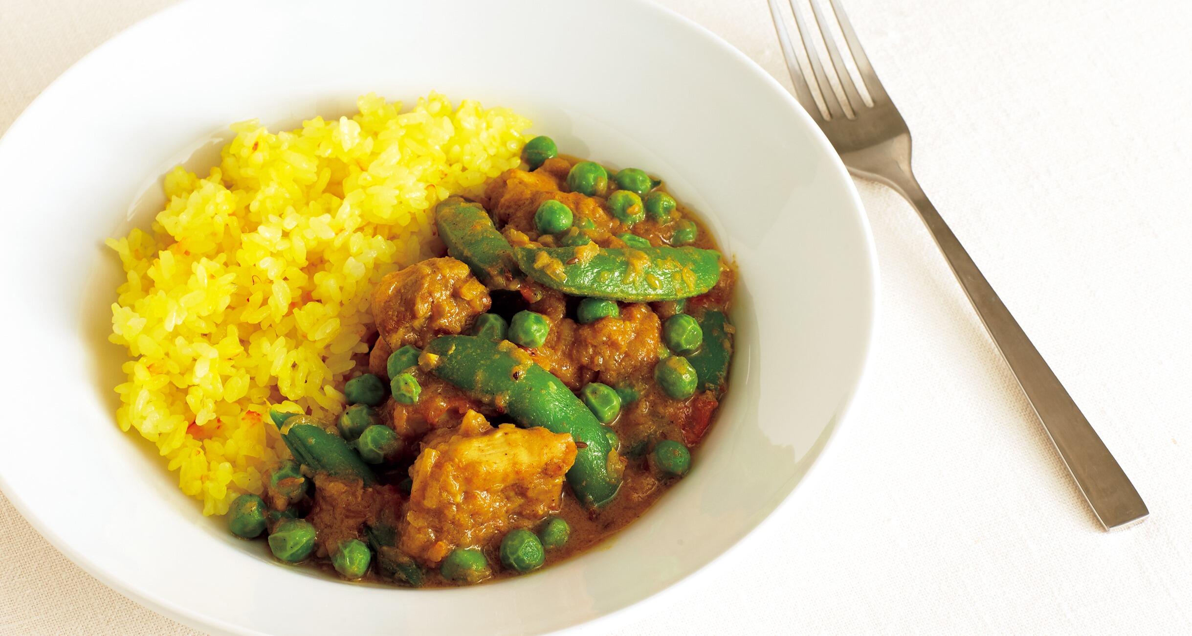 グリーンピースとスナップえんどうの、若々しい緑色が映える一皿です。食べるたびにどんどんカレーが好きになるレシピを料理研究家の大庭英子さんに教えてもらいました。