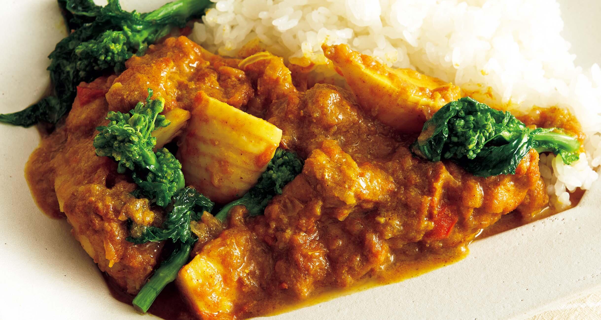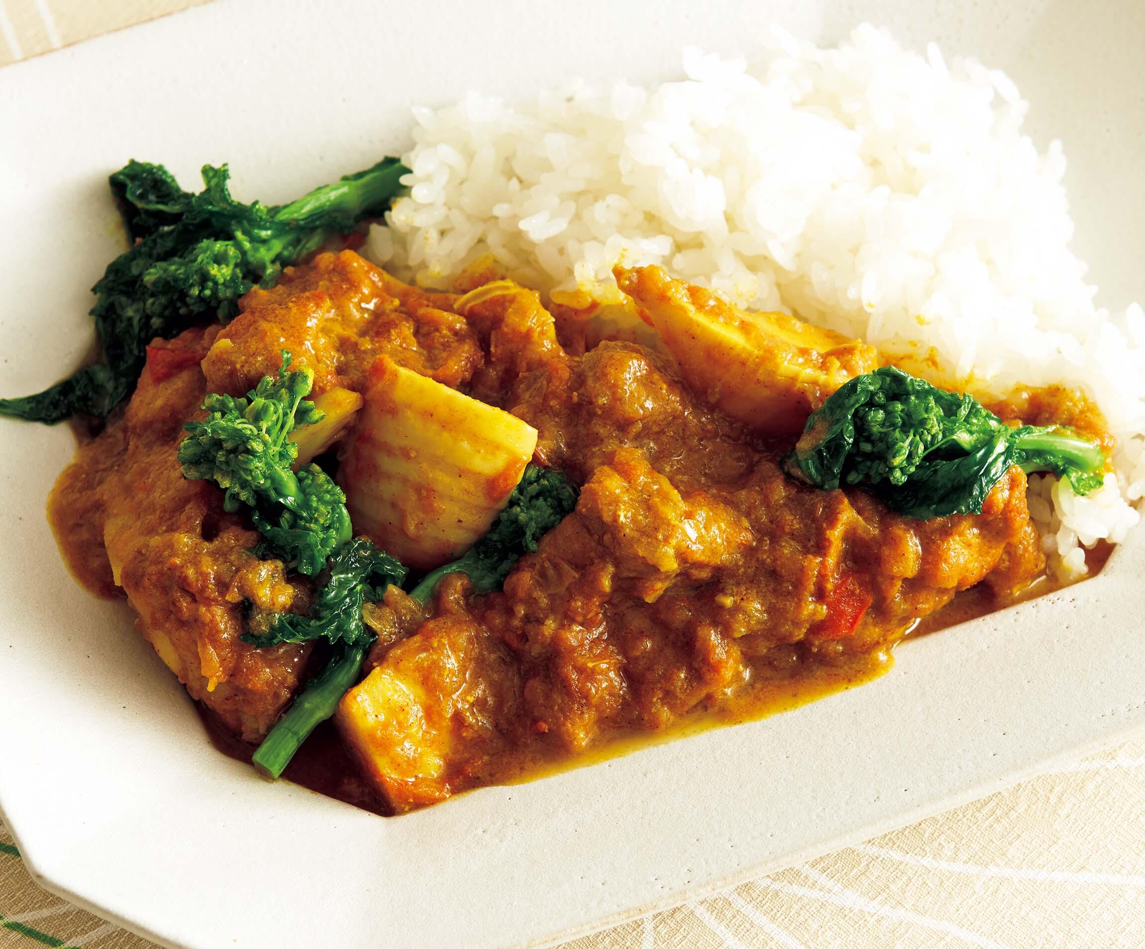 水煮のたけのこや冷凍の菜の花を使っても美味しい一皿です。食感と香りが新感覚のカレーになります。食べるたびにどんどんカレーが好きになるレシピを料理研究家の大庭英子さんに教えてもらいました。