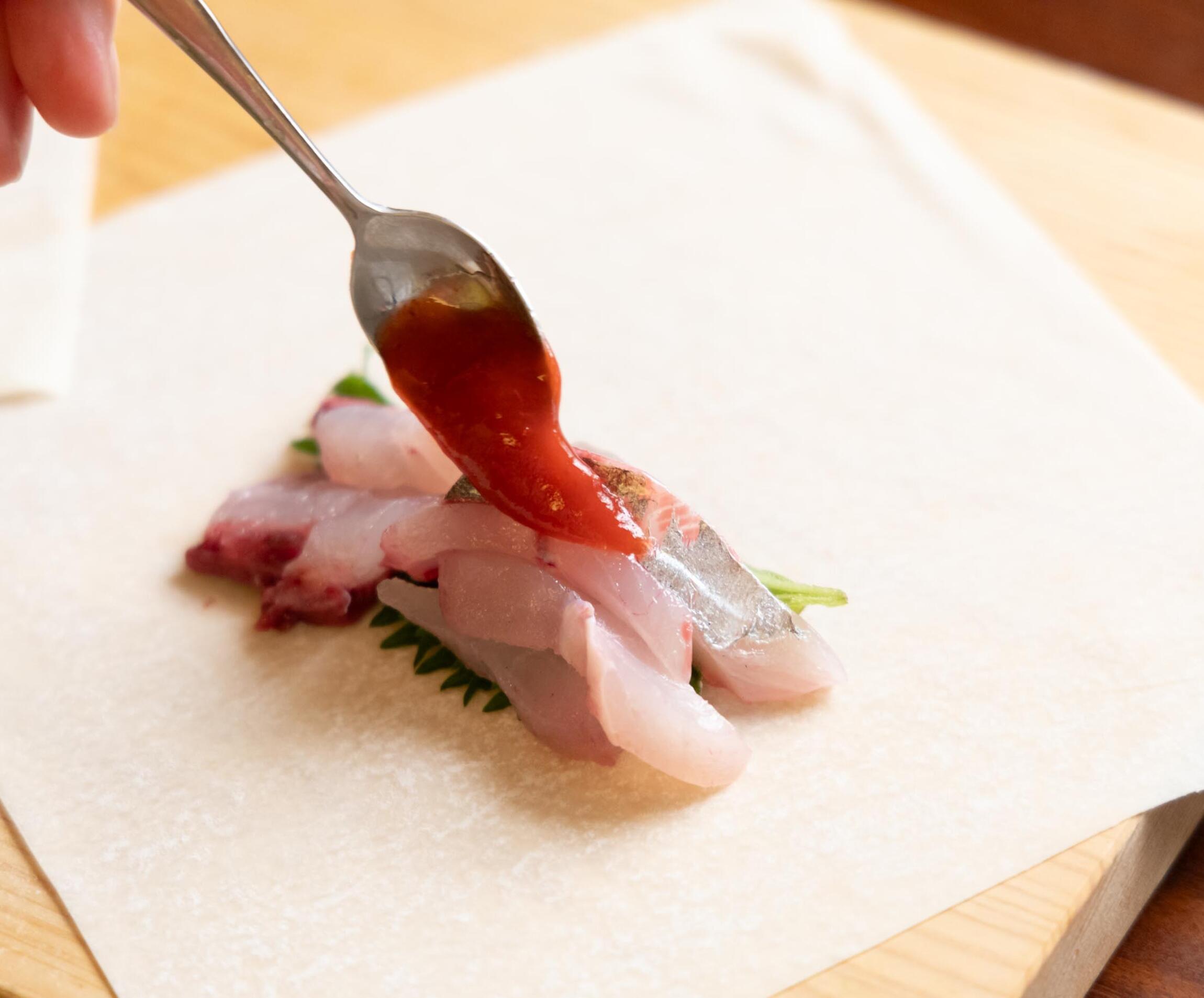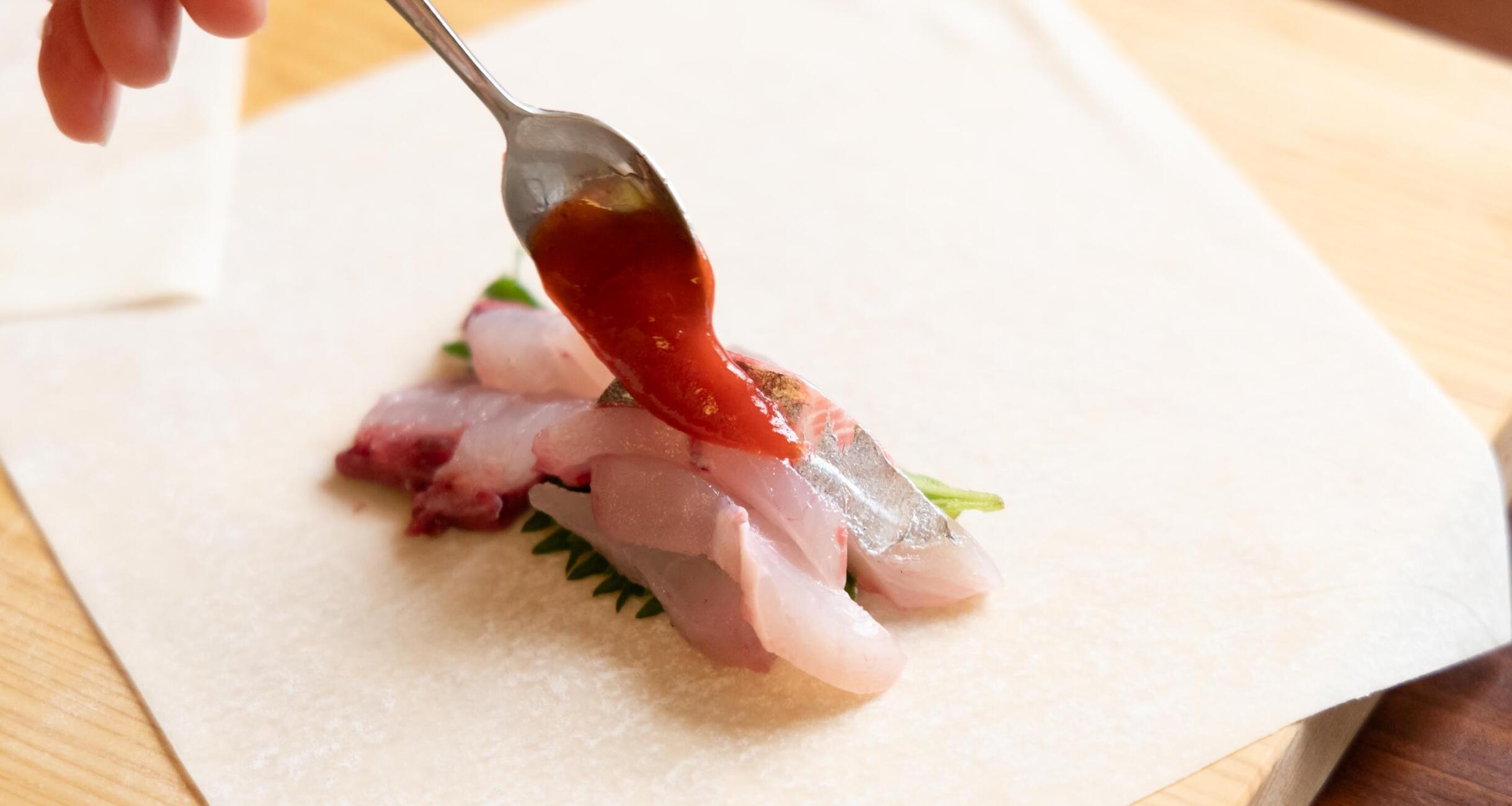 梅しそで味わう“アジの梅しそ春巻き”
