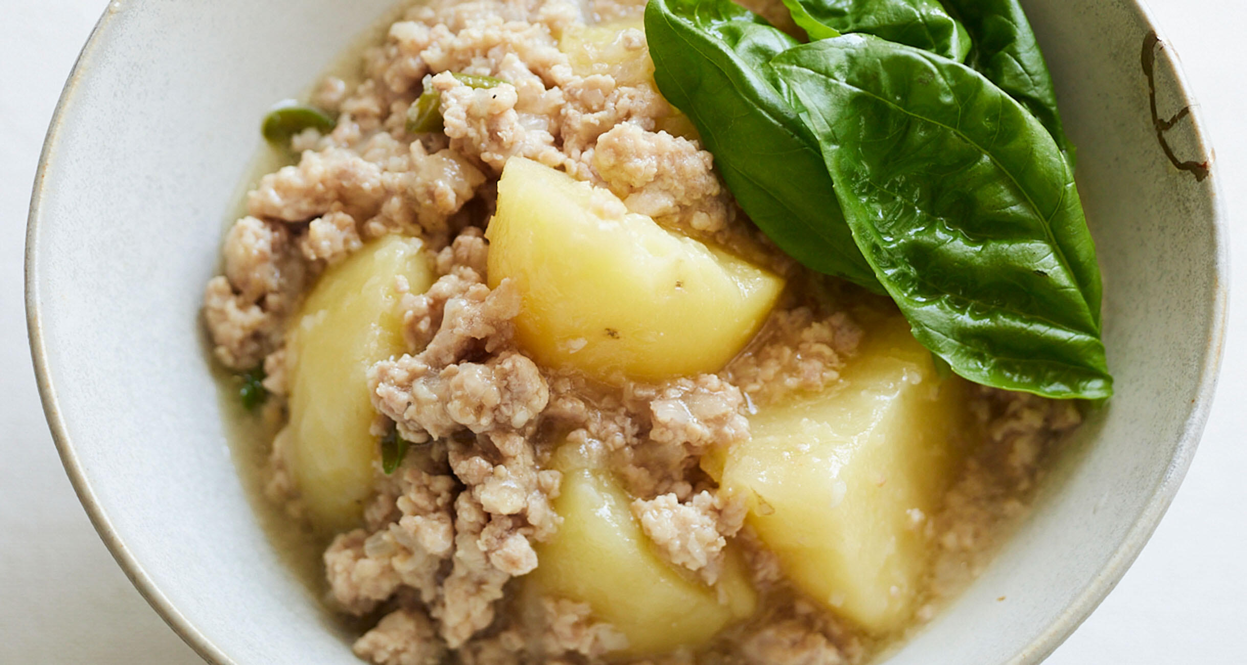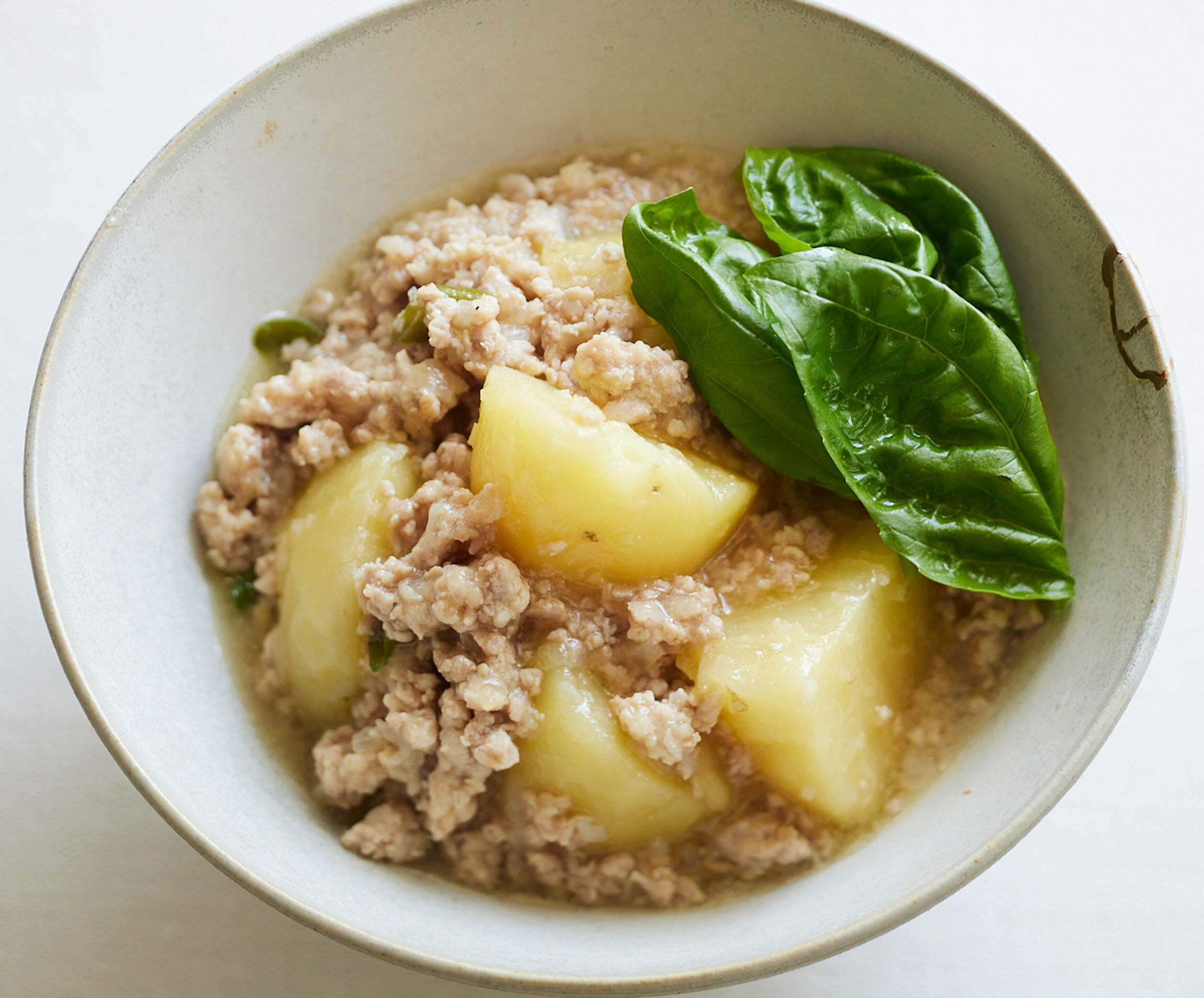 料理研究家の真藤舞衣子さんの肉じゃがは、代々鶏挽き肉。今回は青唐辛子とナンプラーでアジアン風に仕上げました。体がホッとする発酵食品を取り入れたレシピを、料理研究家の真藤舞衣子さんに教えてもらいました。