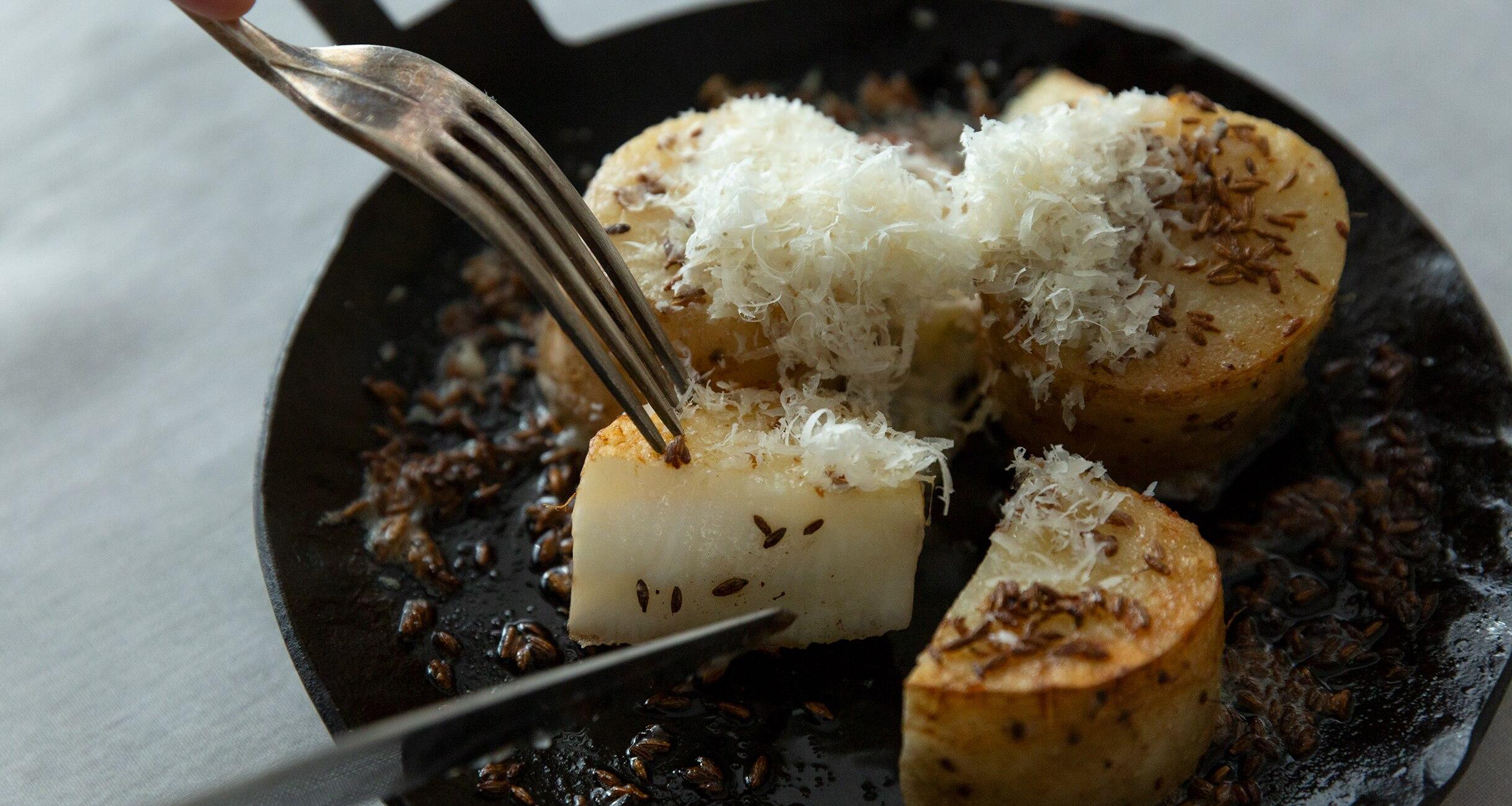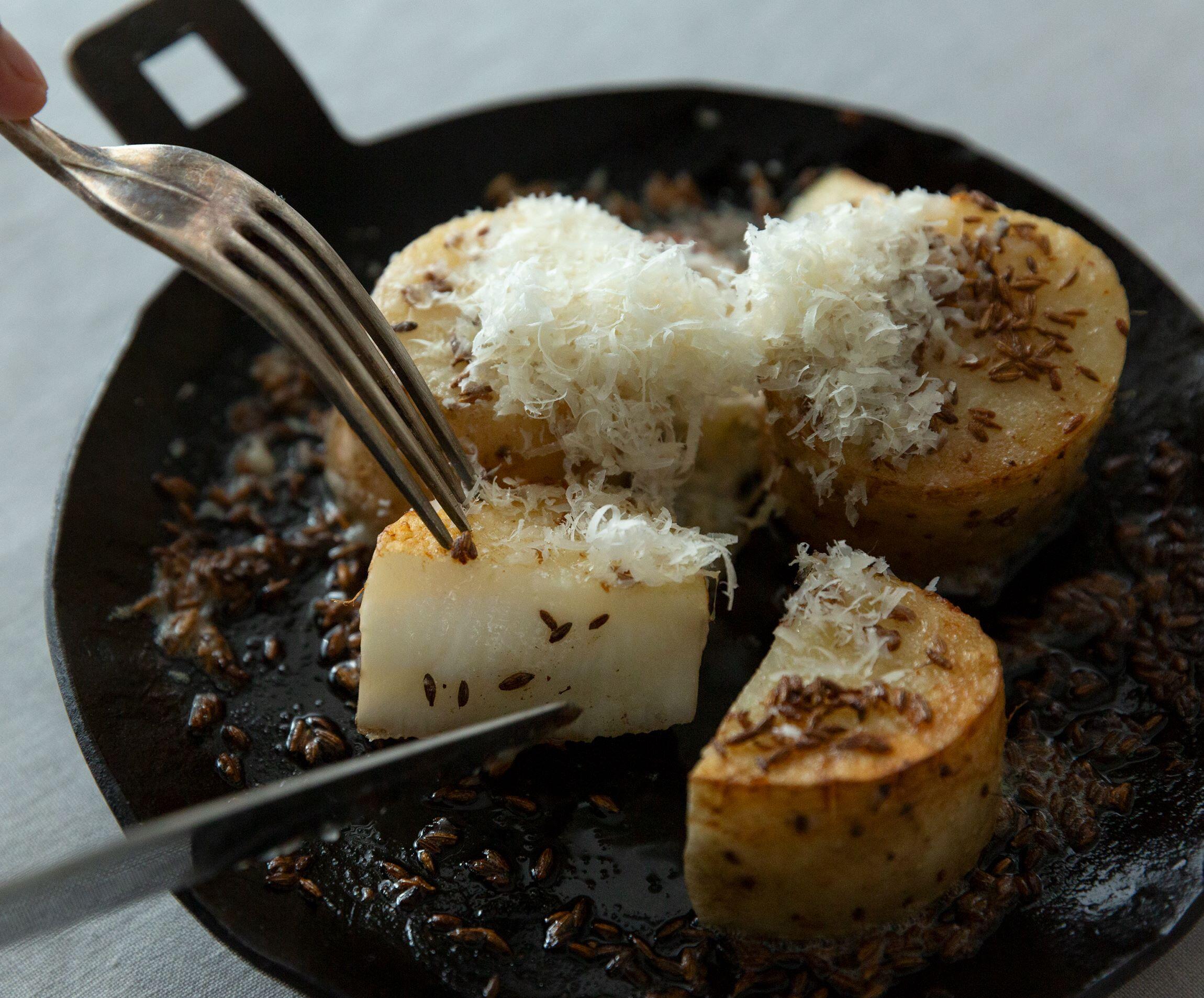 プチプチと弾けるクミンの香りがたまらない、白ワインにぴったりのつまみです。チーズを山盛りふりかけるのも美味しさのヒミツ。料理研究家のワタナベマキさんに大好きな食材とそれを使ったレシピを教えてもらいました。
