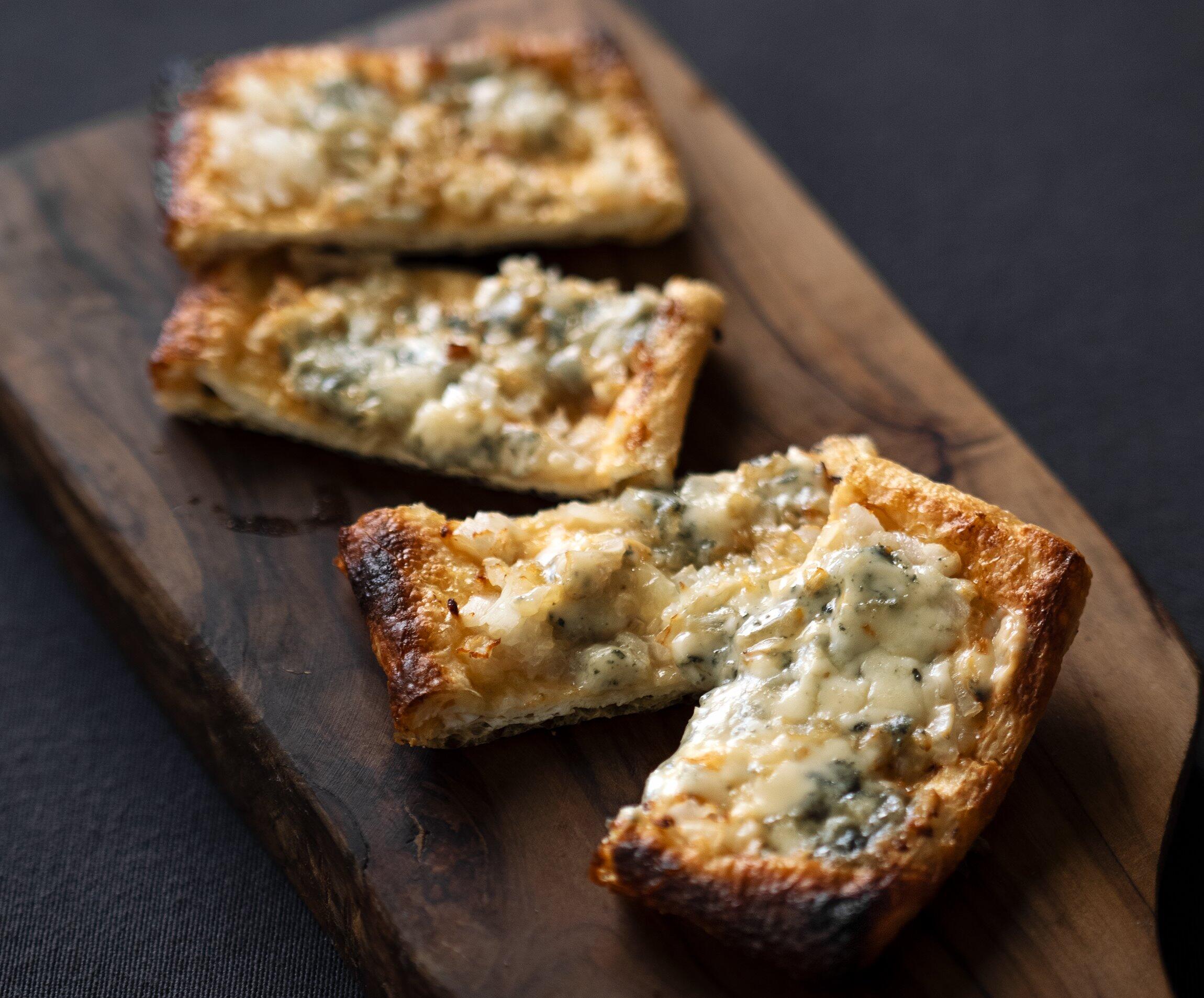 ヘルシーなピザ!“油揚げのオニオンブルーチーズ焼き”