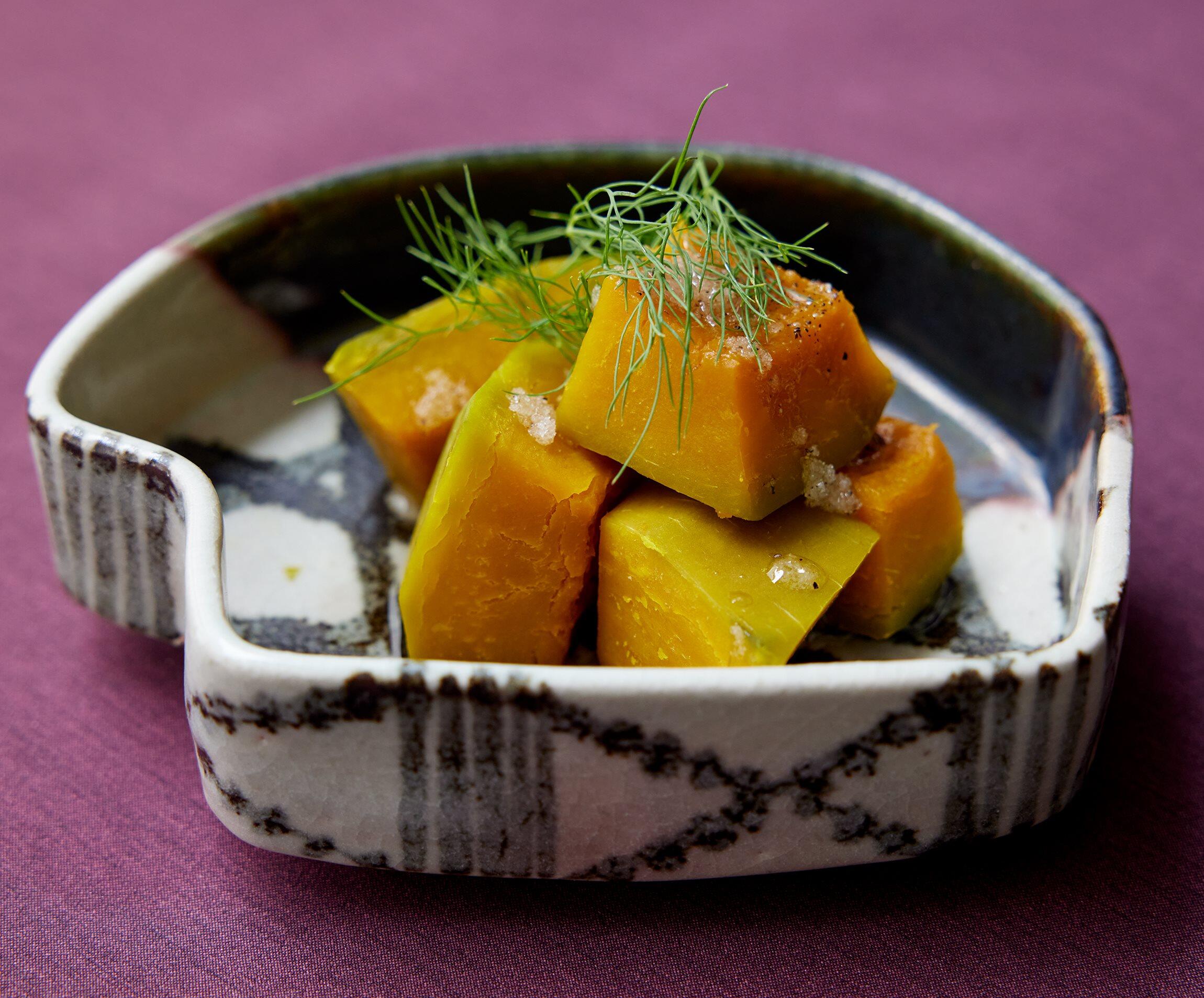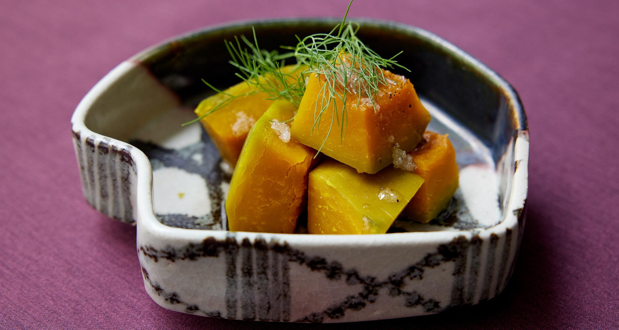 爽やかな香りのディルを添えると、サラダを食べているような、軽やかな味わいが楽しめます。かぼちゃの甘味も引き立ち、相乗効果!魅力的な蒸し料理を料理家のウー・ウェンさんに教えてもらいました。