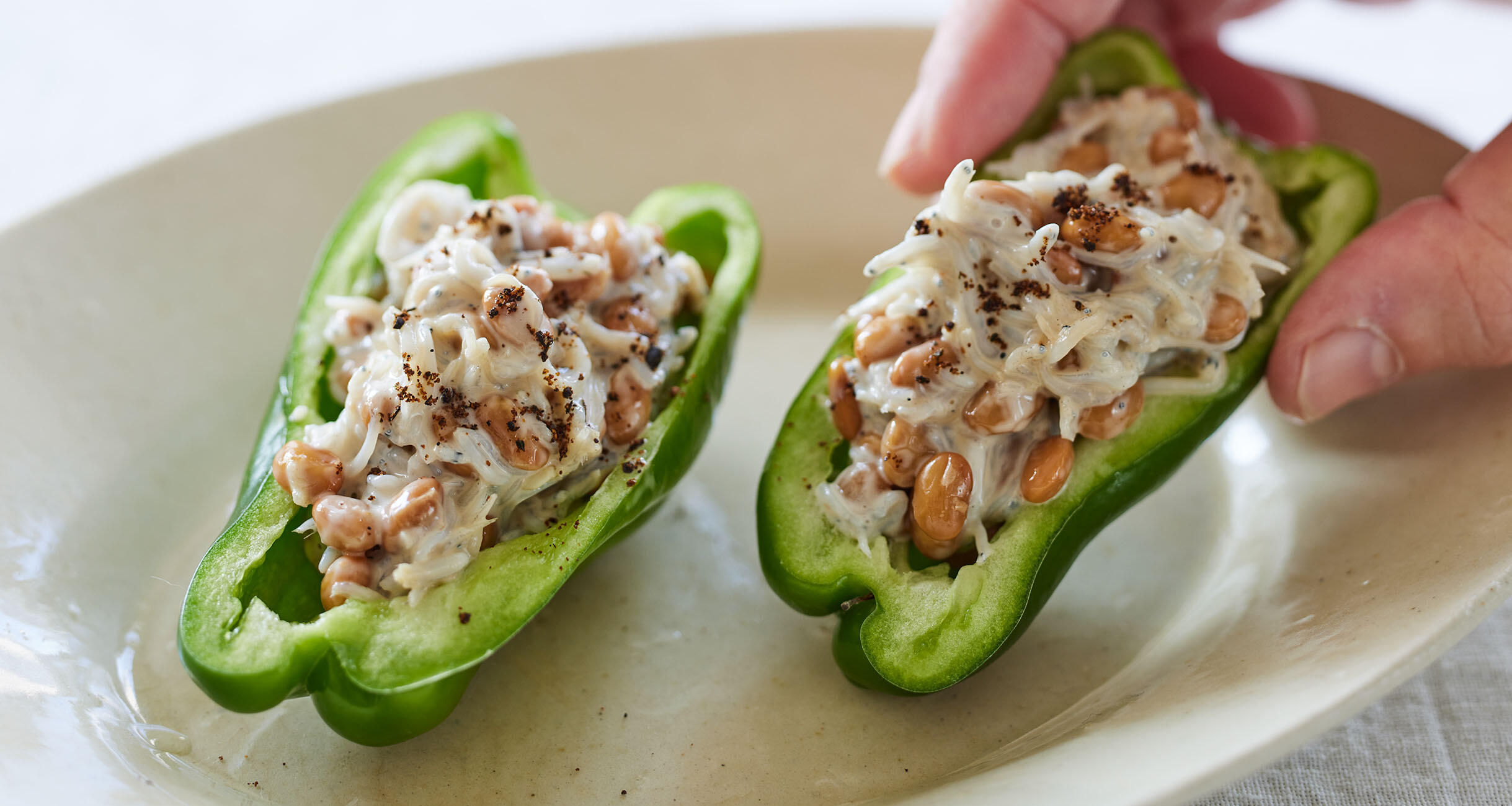 爽やかな食べ心地の“しらす納豆ピーマンのせ”