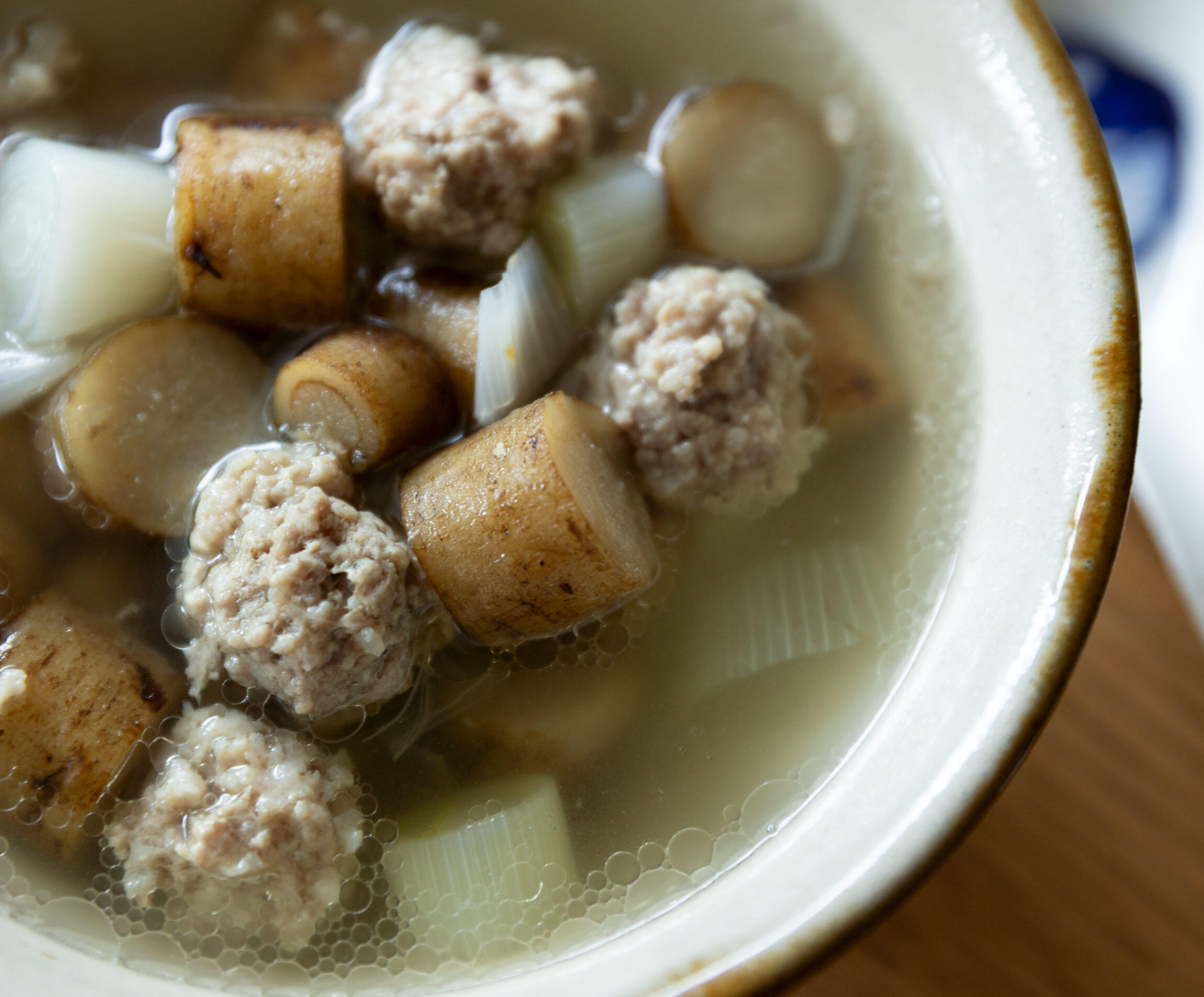 ごぼうをコロコロに切るとホクホクの食感が味わえます。挽き肉だんごもごぼうと同じくらいの大きさなので、一緒に口に入れるとおいしさが混ざり合います料理研究家の有賀薫さんに大好きな食材とそれを使ったレシピを教えてもらいました。