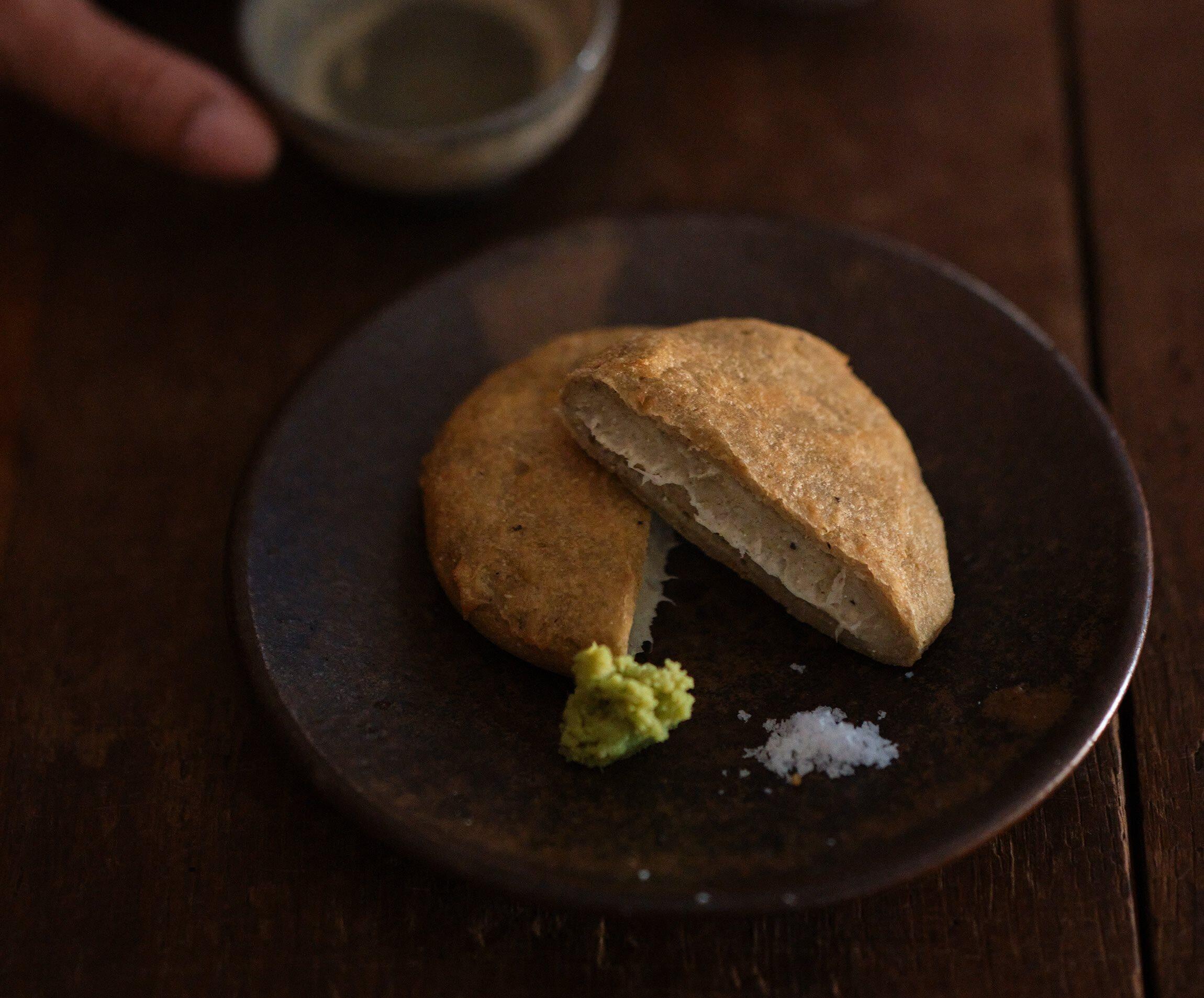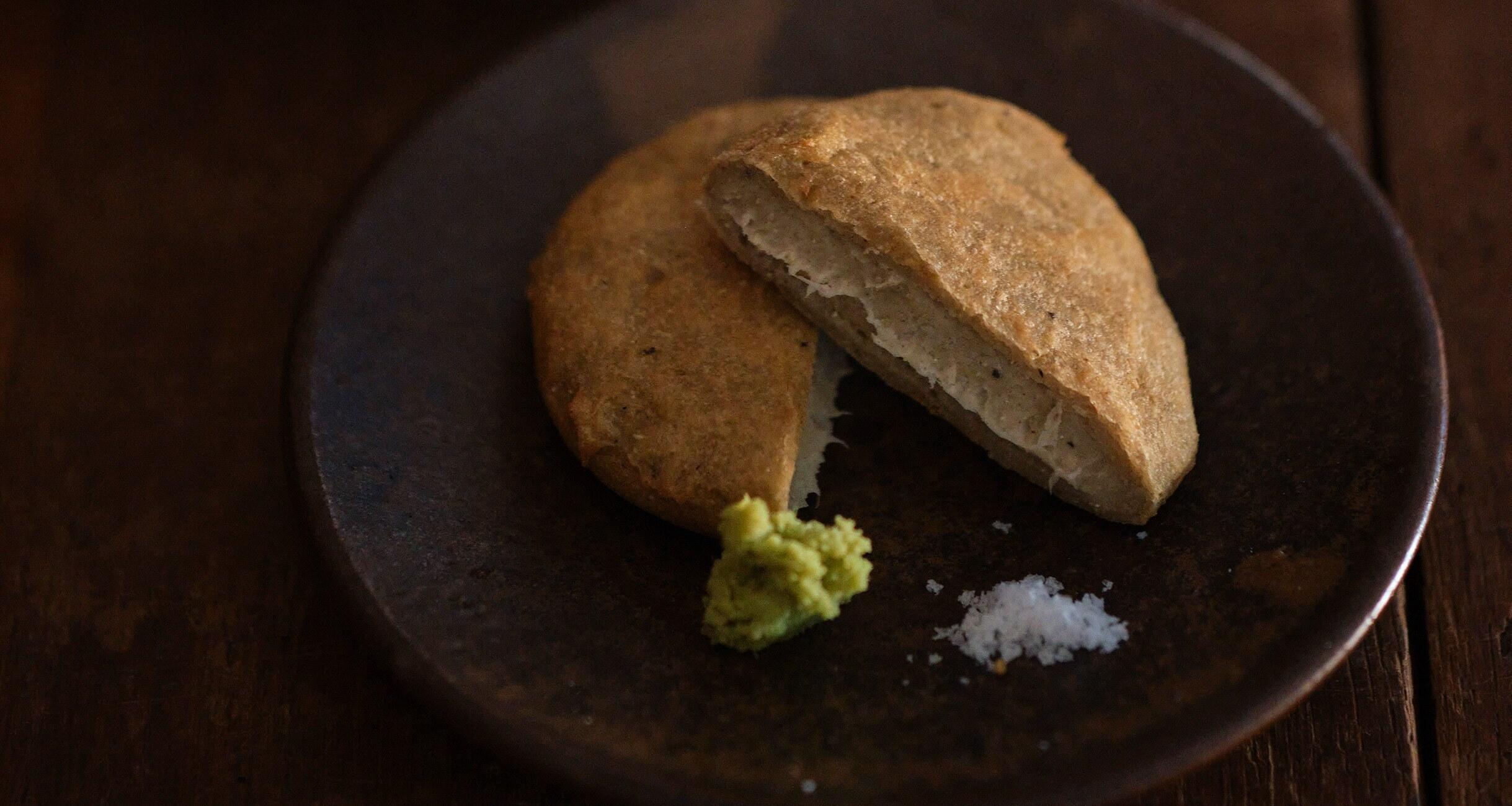 【吉田】1年前に一人でふらっと入りました。揚げたそばがきを初めていただいたので、とても印象に残っています。そばがきはそば粉の質が味を左右しますが、揚げてしまうので手頃なそば粉でも大丈夫。ボウルは大きすぎると混ぜにくいので、小さめのものかどんぶりで。揚げることで少し硬くなるので、生地は気持ちゆるめにつくるといいですよ。