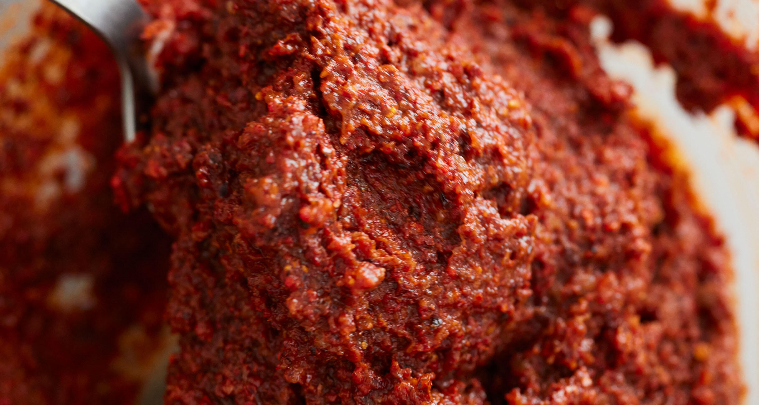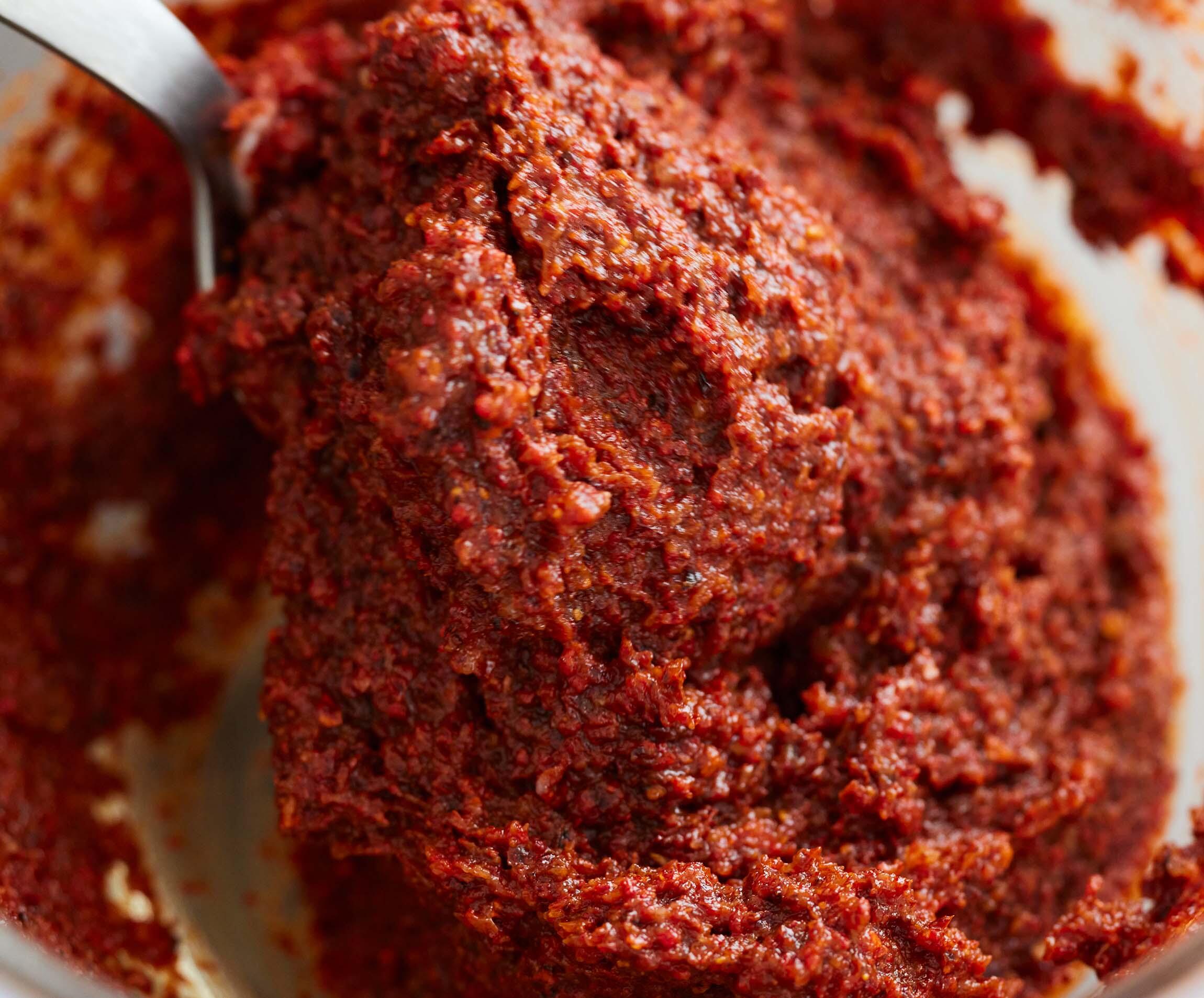 コチュジャンは、唐辛子、米麹、塩などを混ぜてつくる、朝鮮半島発祥の発酵調味料。ビビンパやナムルなど使い道も広く、キムチのベース材料としても使えます。ポイントは辛味が少なく旨味の強い韓国唐辛子を使うこと!
