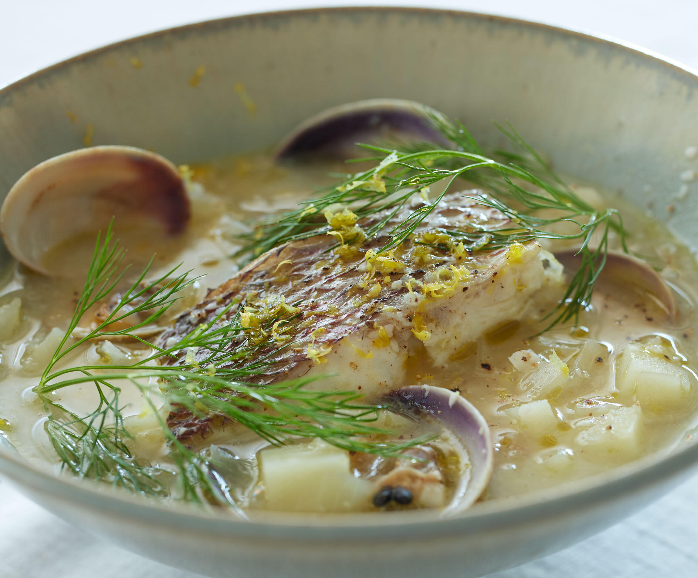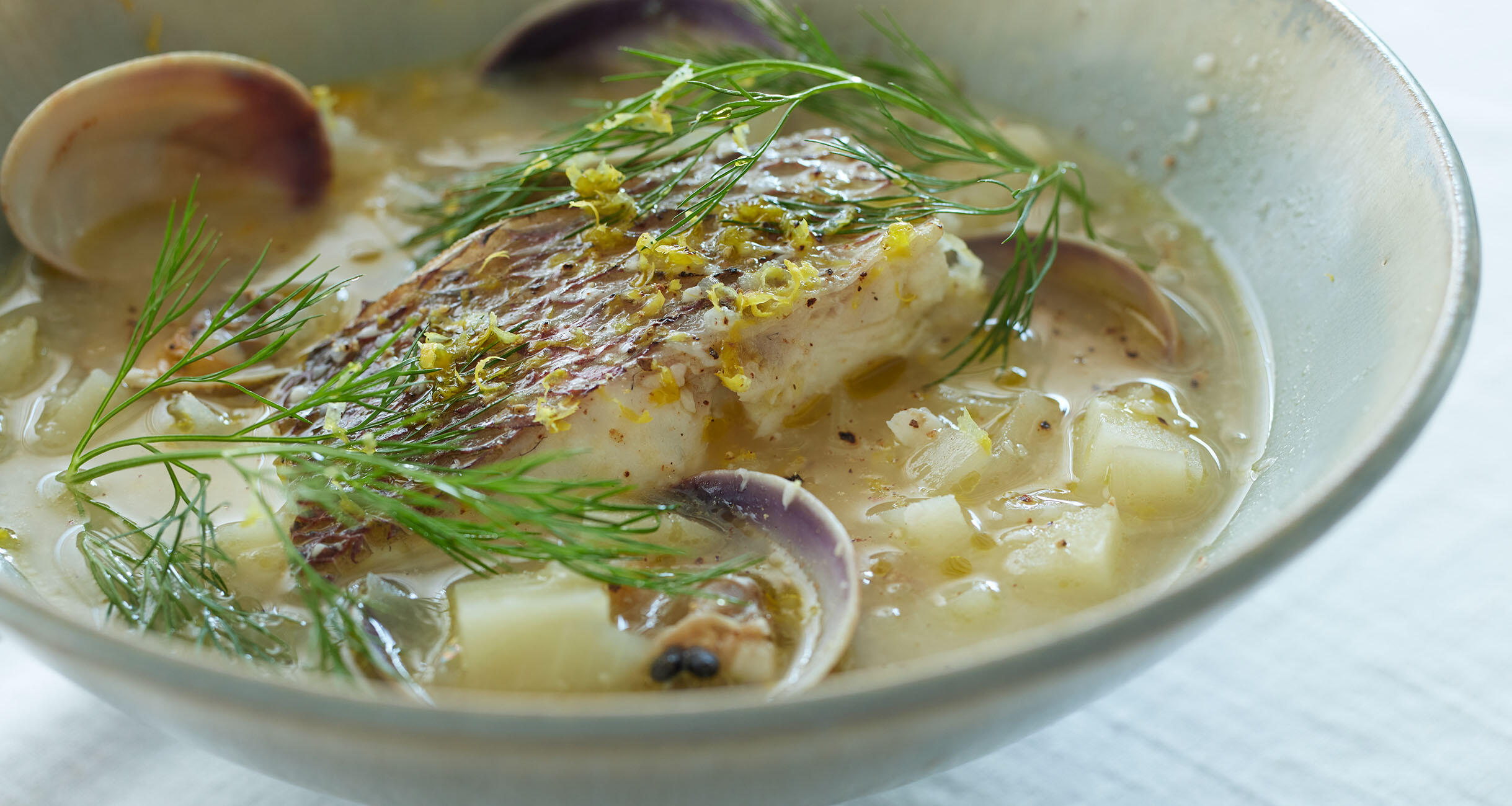 「ズッパ」とはイタリア語で「スープ」という意味で、今回紹介するのは酒粕をあさりや鯛と合わせたもの。ハーブやレモンの香りが粕汁特有の強い香りをマスキングしてくれます。体がホッとする発酵食品を取り入れたレシピを、料理研究家の真藤舞衣子さんに教えてもらいました。