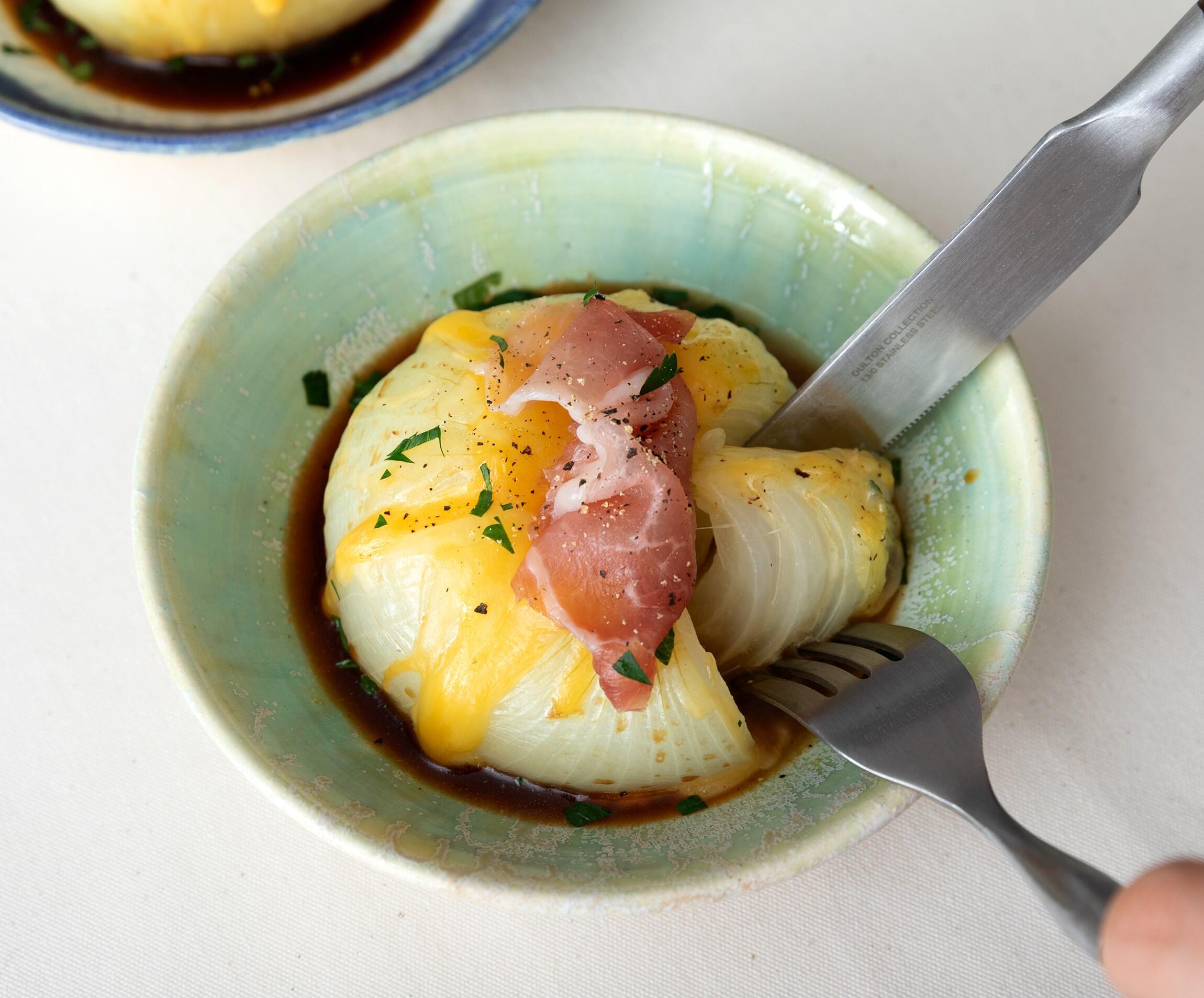 あふれ出る甘い汁、見た目のインパクト、チーズ、生ハム、ポン酢醤油の斬新な組み合わせが楽しい一皿。イタリアンパセリをオレガノやタイムに変えて、香りをアレンジしても。簡単につくれる薬膳レシピを料理家の齋藤菜々子さんに教えてもらいました。