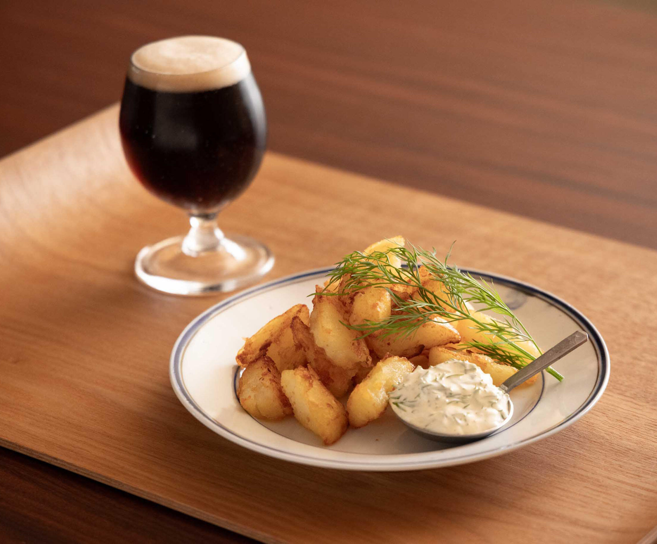 ポテトフライにはビールが定番ですが、ロースト感のある黒生ビールがお薦めです。心地よいハーモニーを生み、ビールもポテトも止まりません。