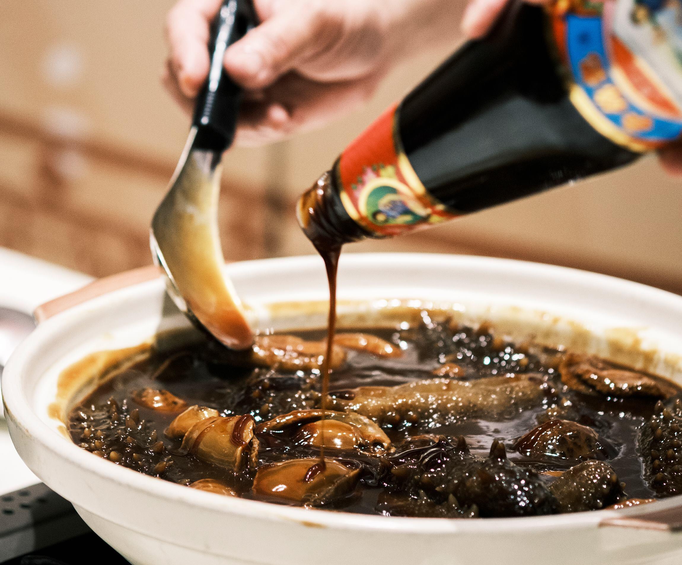 「オイスターソースは、実はハプニングがもとで生まれたんです」。マネージャーの李嶺亨(ヘンリー)さんはそう切り出し、誕生秘話を教えてくれた。良質な海産物がとれる広東省珠海市の南水で小さな食堂を営んでいた創業者・李錦裳さん。ある日、牡蠣のスープを仕込んでうっかり火を消し忘れてしまったが、愕然としつつ鍋底にたまった褐色の煮汁をなめたところ、濃厚なコクと旨味に驚愕。その発見をもとにオイスターソースを開発し、1888年に自身の名を社名に用いて創業した。現在は6ヶ所に生産拠点を置き、100以上の国や地域へ製品を輸出するまでに成長したのだという。