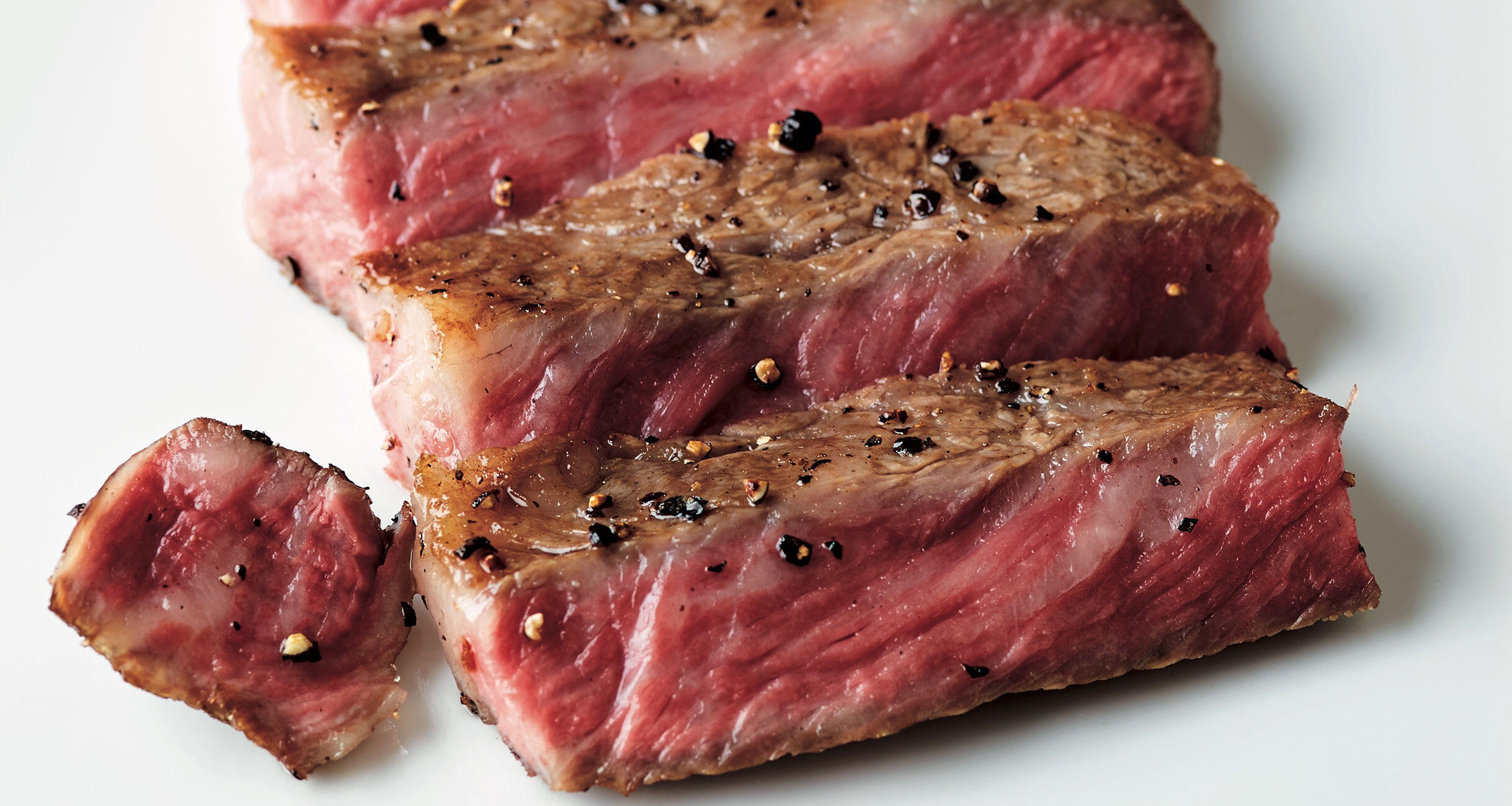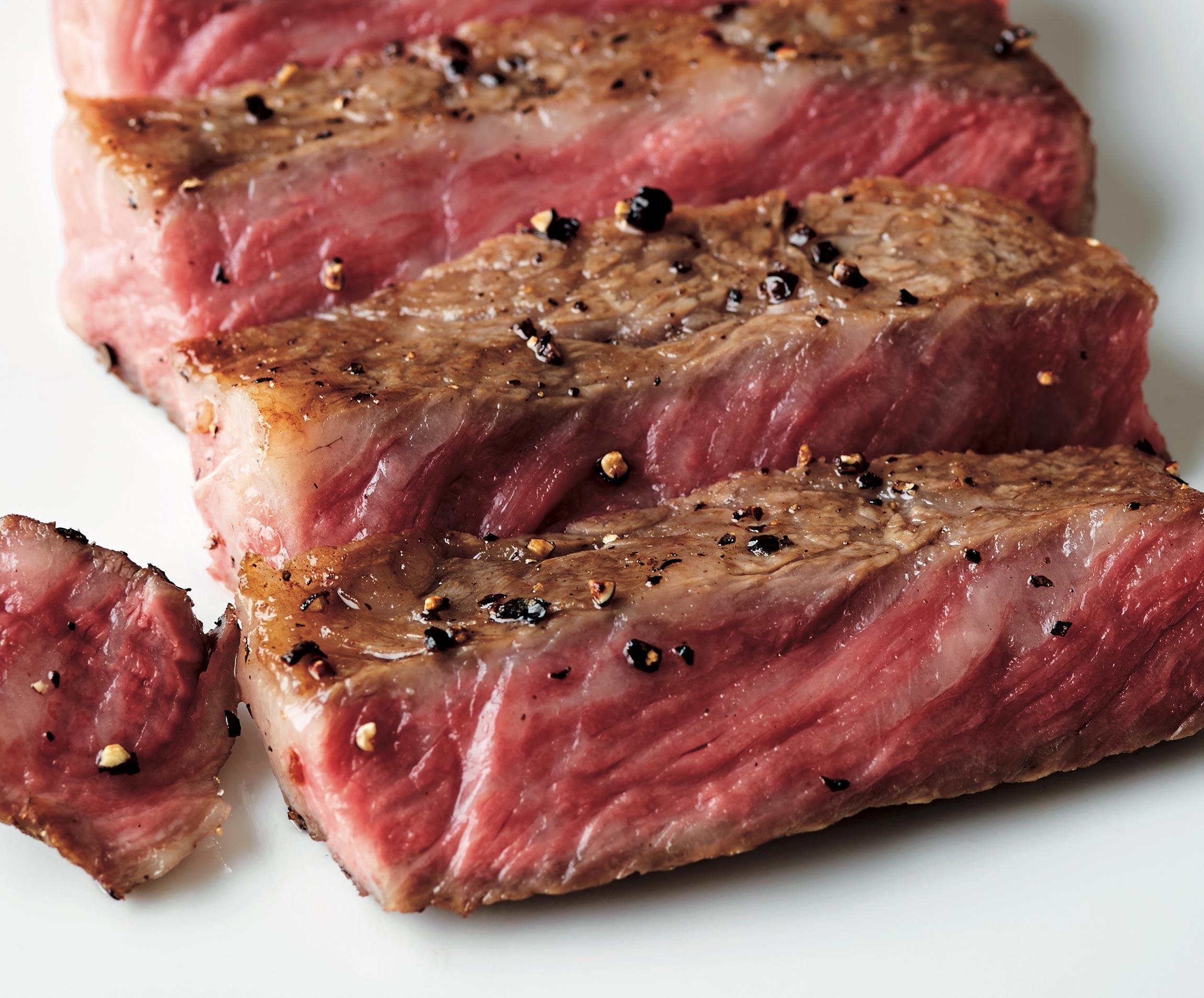 焼き加減はミディアムレア。牛肉の赤身と脂の旨味が口の中で溶け合う最中に、奥歯でガリッと噛み砕いた胡椒の香りが一気に広がる。