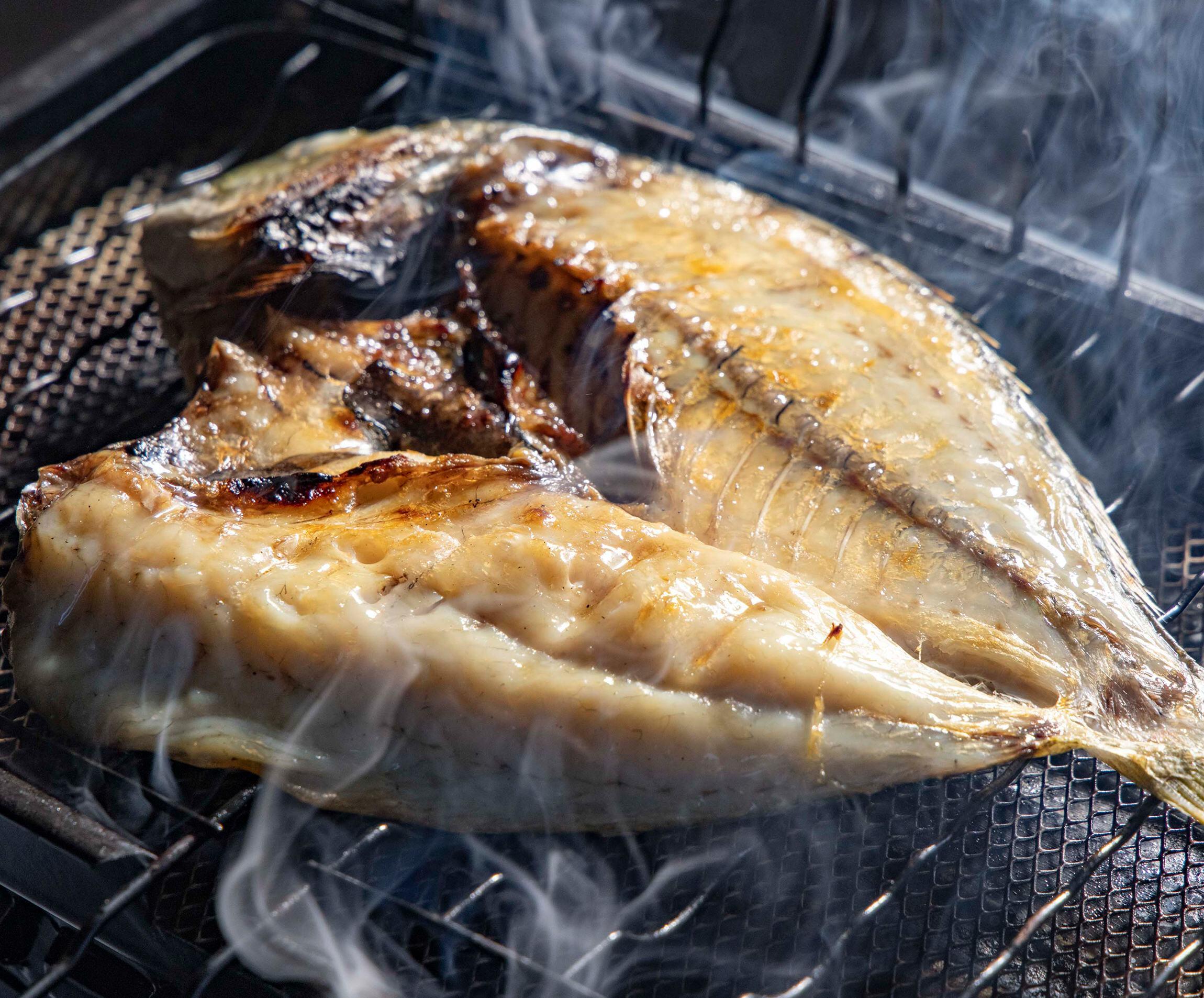 「開いた身のほうから軽く焼いて表面を固め、裏返して皮目を焦げるぐらいまでしっかり焼いてください。美味しい脂が落ち過ぎないようにするためです」と内田さん。