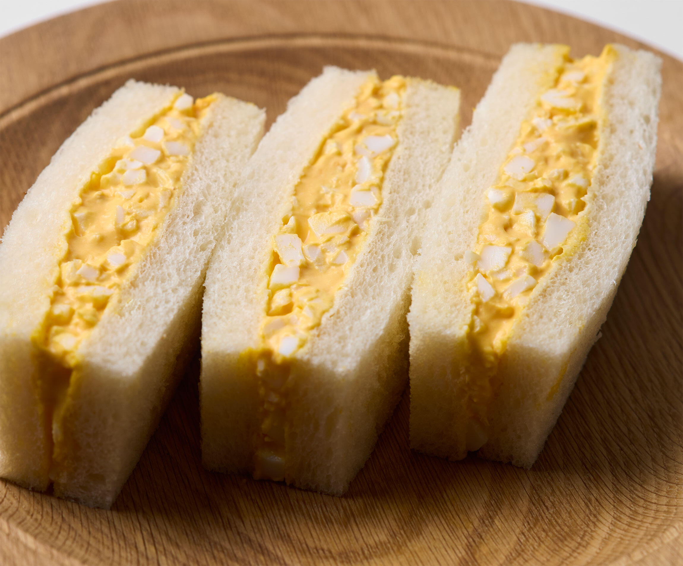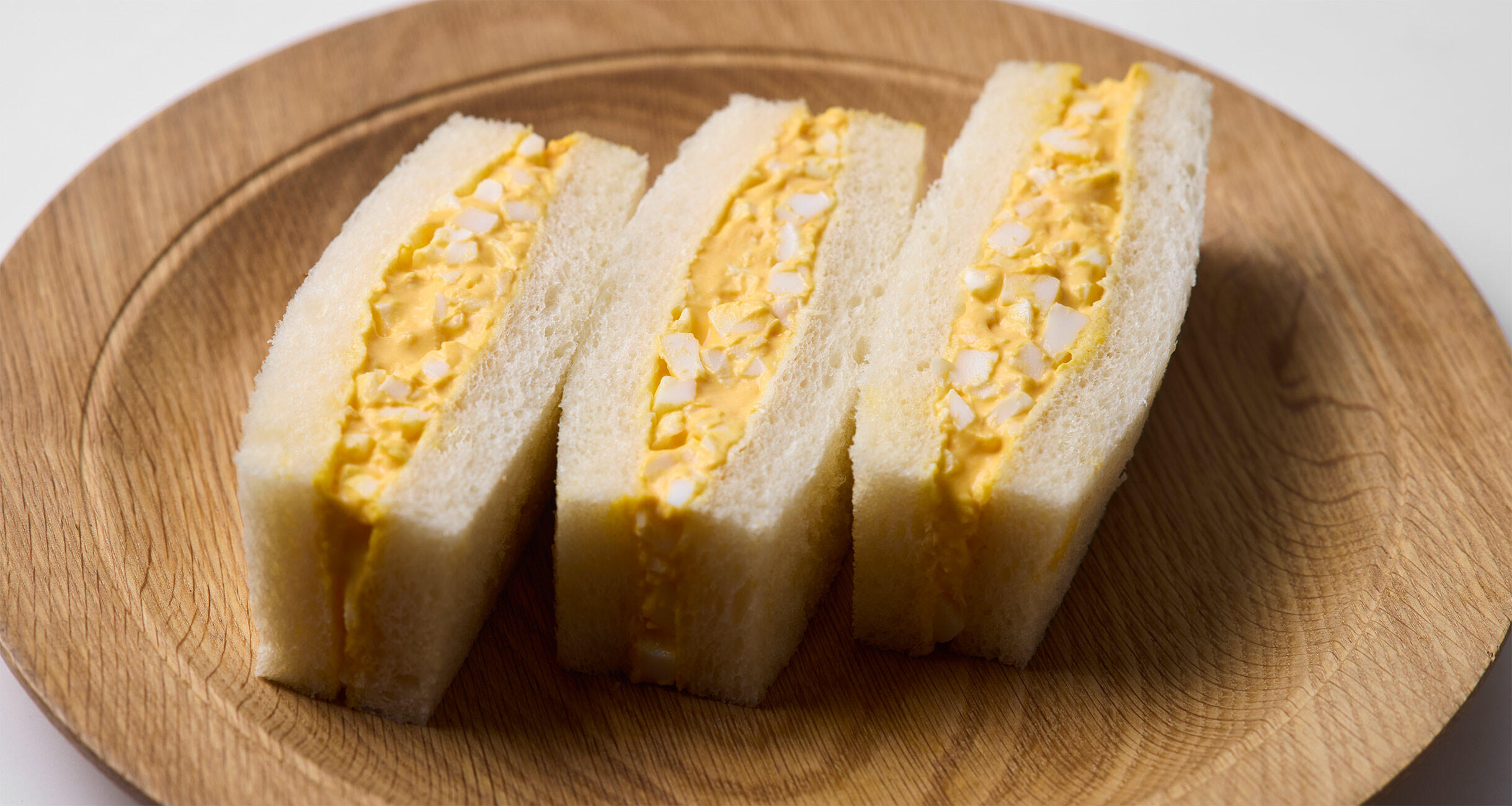 これぞ王道!たまごの優しさ、柔らかさと、ふわふわ食パンを、マスタードバターがキリッと引き締めつつ、渾然一体となって口中で消えていく。食べやすいサイズ感もポイント。